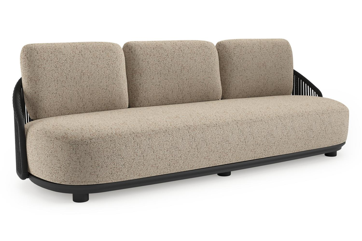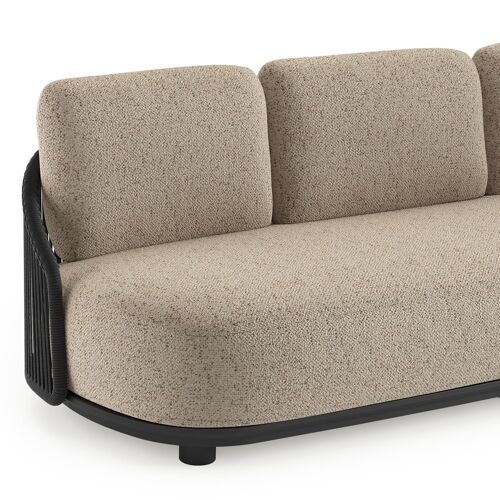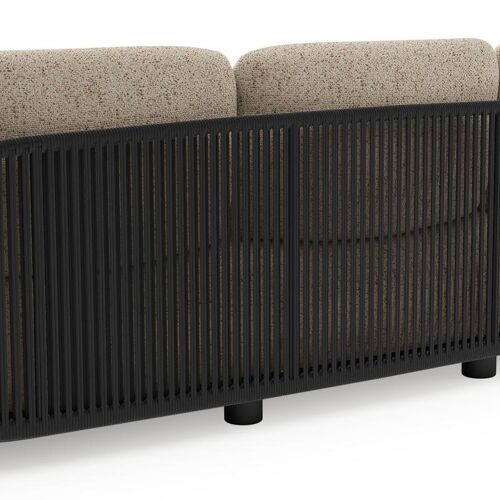 Vadelo loungebank in zwart aluminium en zwart verticaal geweven ronde rope met bora jungle all weather cosytica kussen | Exterioo