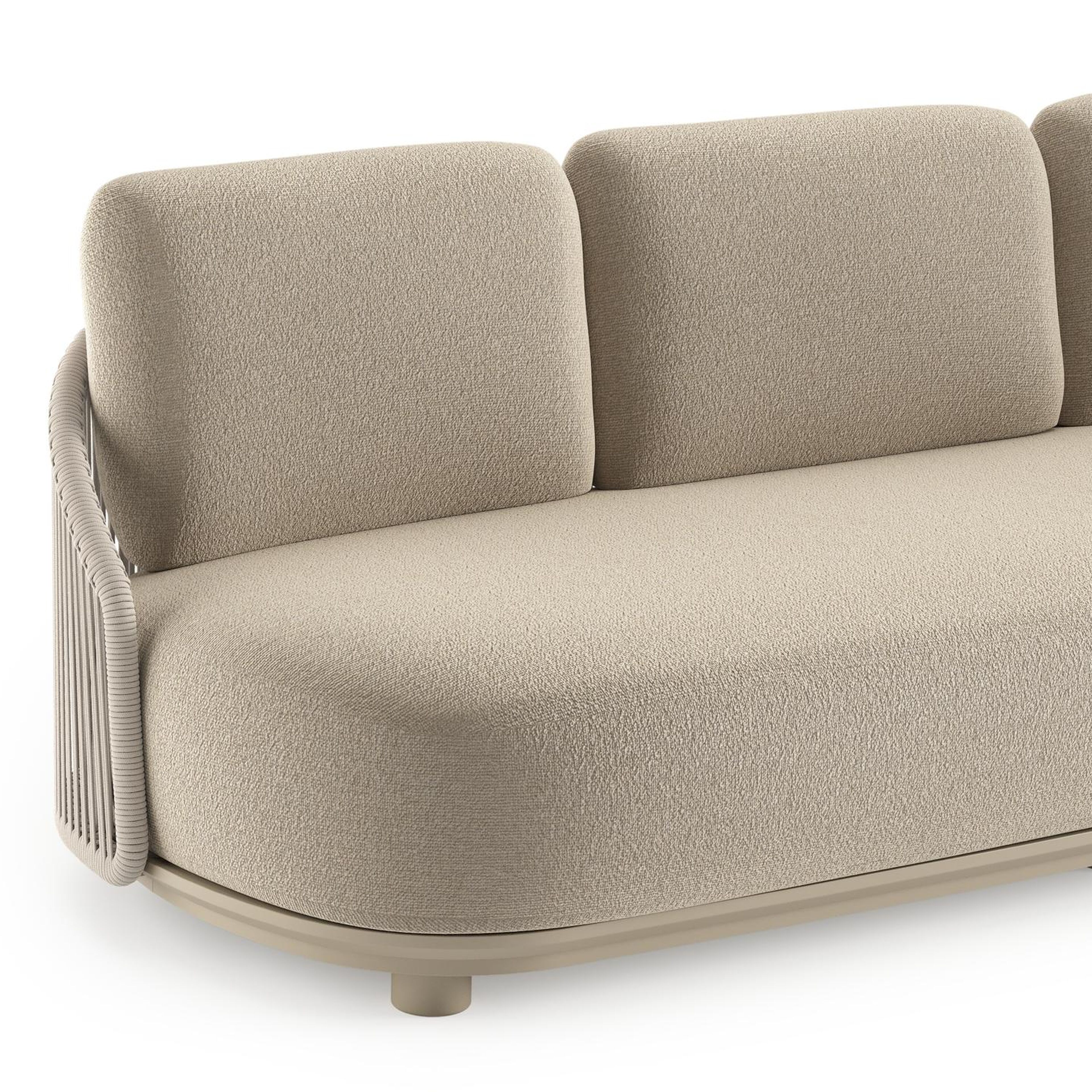 Vadelo loungeset in beige aluminium en beige verticaal geweven ronde rope met marbella sand all weather cosytica kussen | Exterioo tuinmeubelen
