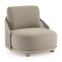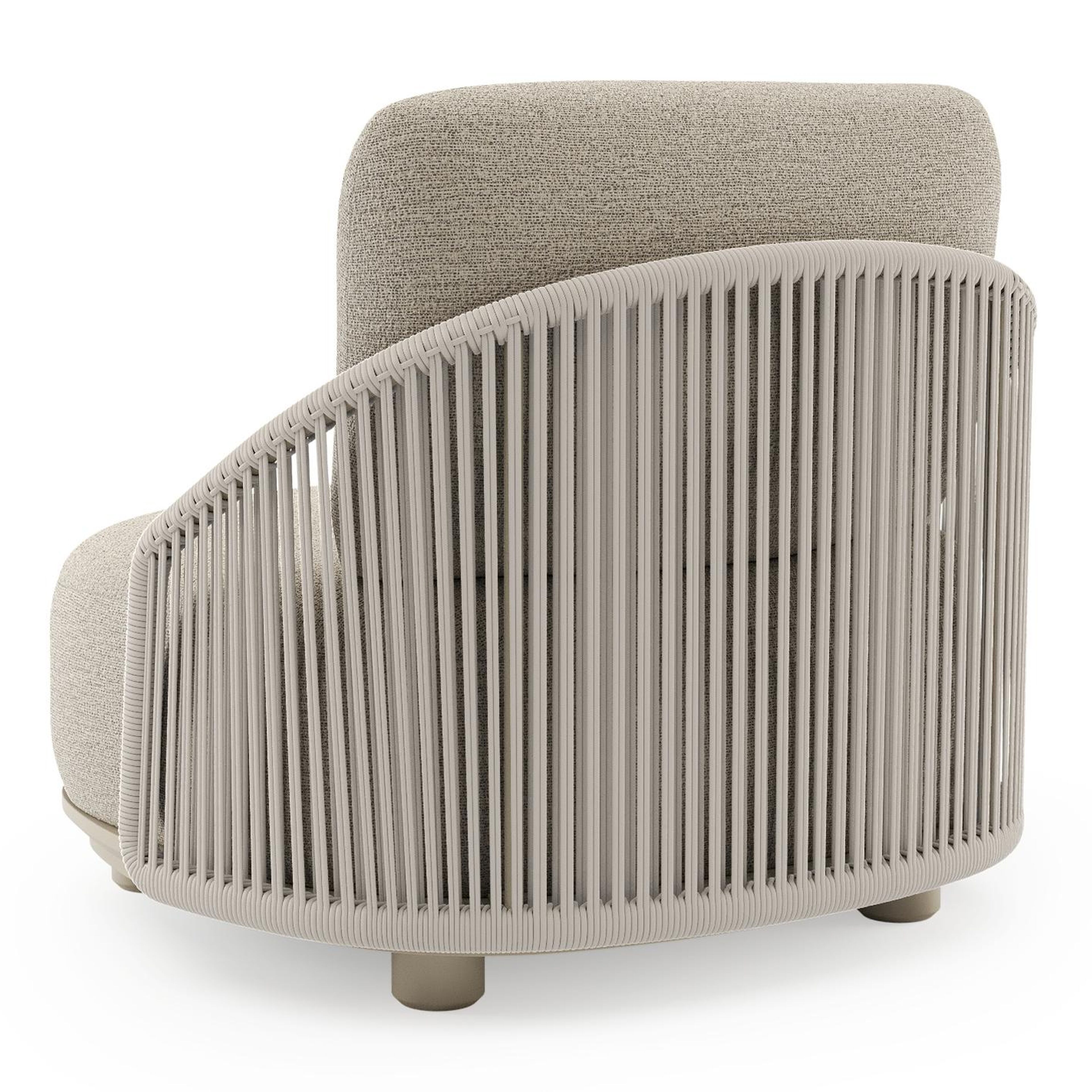 Vadelo loungestoel in beige aluminium en beige verticaal geweven ronde rope met catania beige all weather cosytica kussen | Exterioo tuinmeubelen