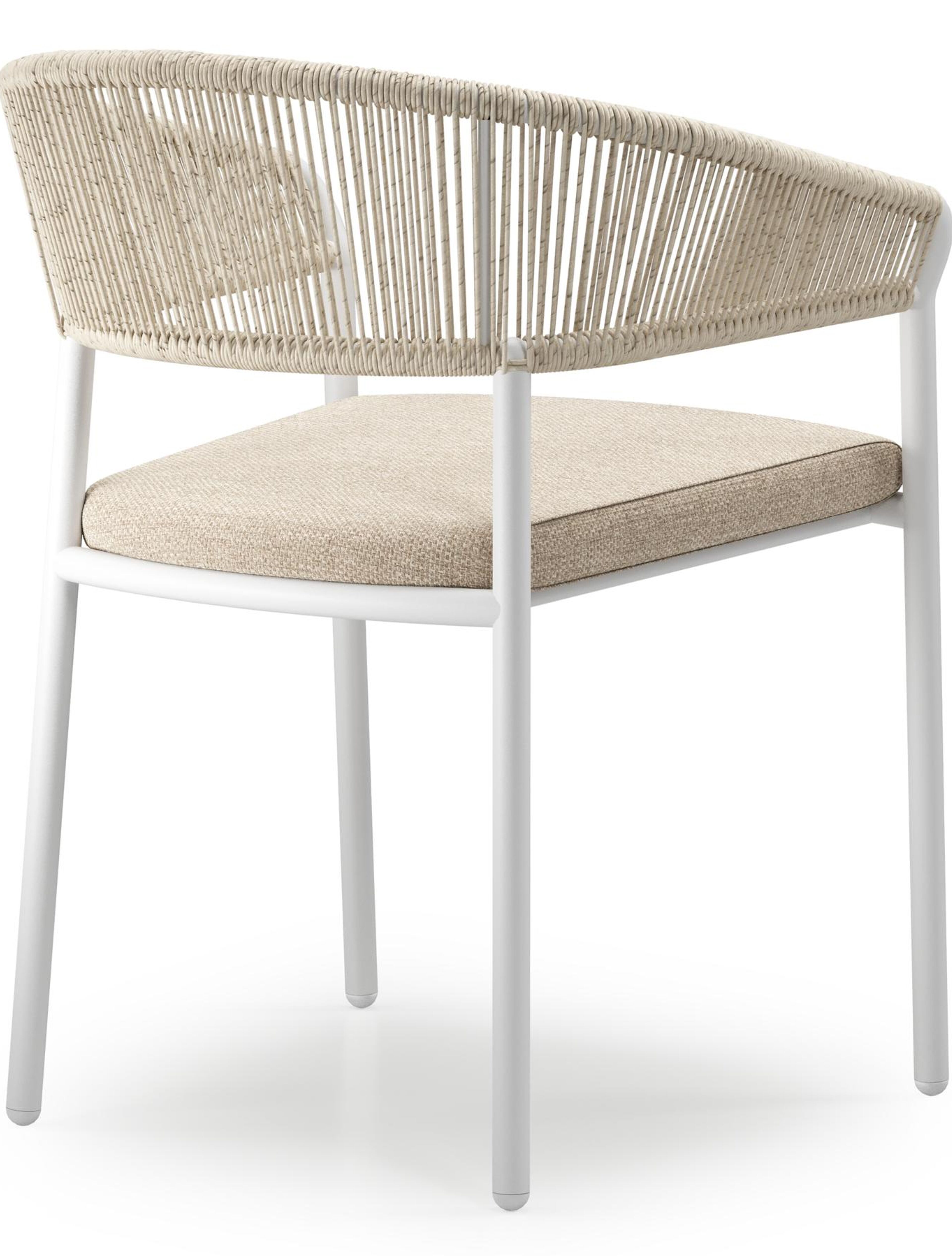 De Zamora tuinstoel combineert een stijlvolle uitstraling met een aangenaam zitcomfort. Het frame van de tuinstoel is gemaakt uit roestvrij aluminium, een sterk, maar toch licht materiaal dat makkelijk verplaatsbaar is. Het oppervlak is glad afgewerkt waardoor het geen vuil aantrekt en onderhoudsvriendelijk is. De poedercoating zorgt voor de UV- en weerbestendigheid van je meubel. De rugleuning en armleuning zijn volledig afgewerkt met rope voor een hedendaagse elegante touch. De tuinstoel is stapelbaar en dus makkelijk op te bergen. De stoelkussens zijn inbegrepen en gemaakt uit Weather+ Softtouch. De duurzame kussens voelen zacht aan en zijn vuilafstotend. Weather+ Softtouch kussens zijn beperkt waterafstotend. In de winter of bij langdurige regen bewaar je de kussens best binnen.