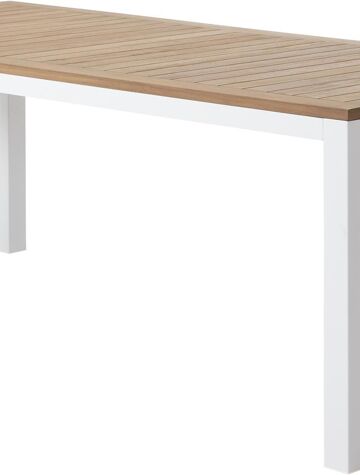 Een tafelblad uit teak staat gelijk aan bijzondere kwaliteit en natuurlijk design. Teak is een kwalitatieve houtsoort gekenmerkt door zijn hardheid. Aangezien hout leeft, kan de structuur of kleur licht anders zijn dan op het beeld weergegeven.