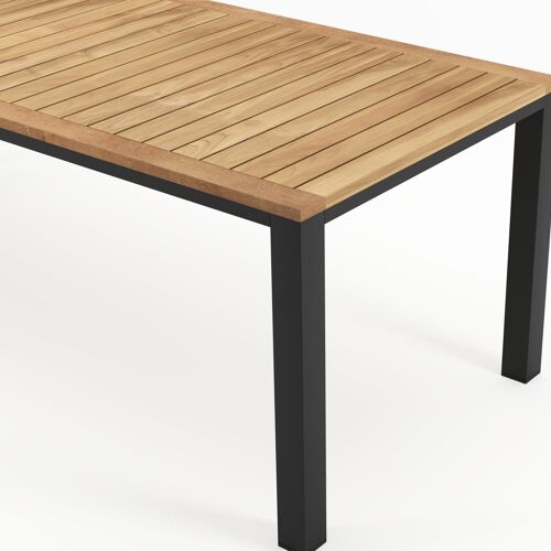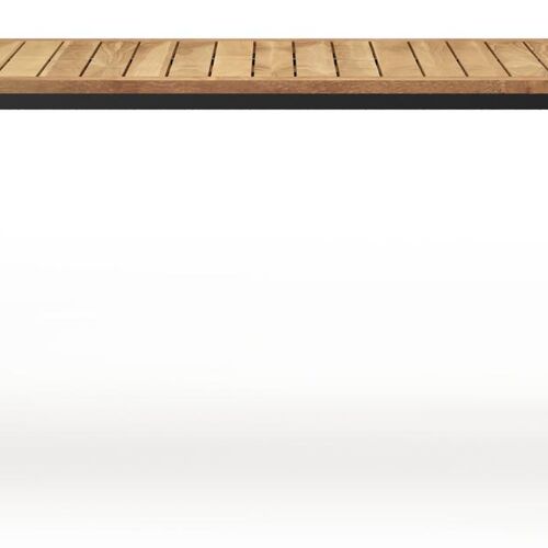 Een tafelblad uit teak staat gelijk aan bijzondere kwaliteit en natuurlijk design. Teak is een kwalitatieve houtsoort gekenmerkt door zijn hardheid. Aangezien hout leeft, kan de structuur of kleur licht anders zijn dan op het beeld weergegeven.