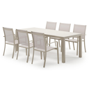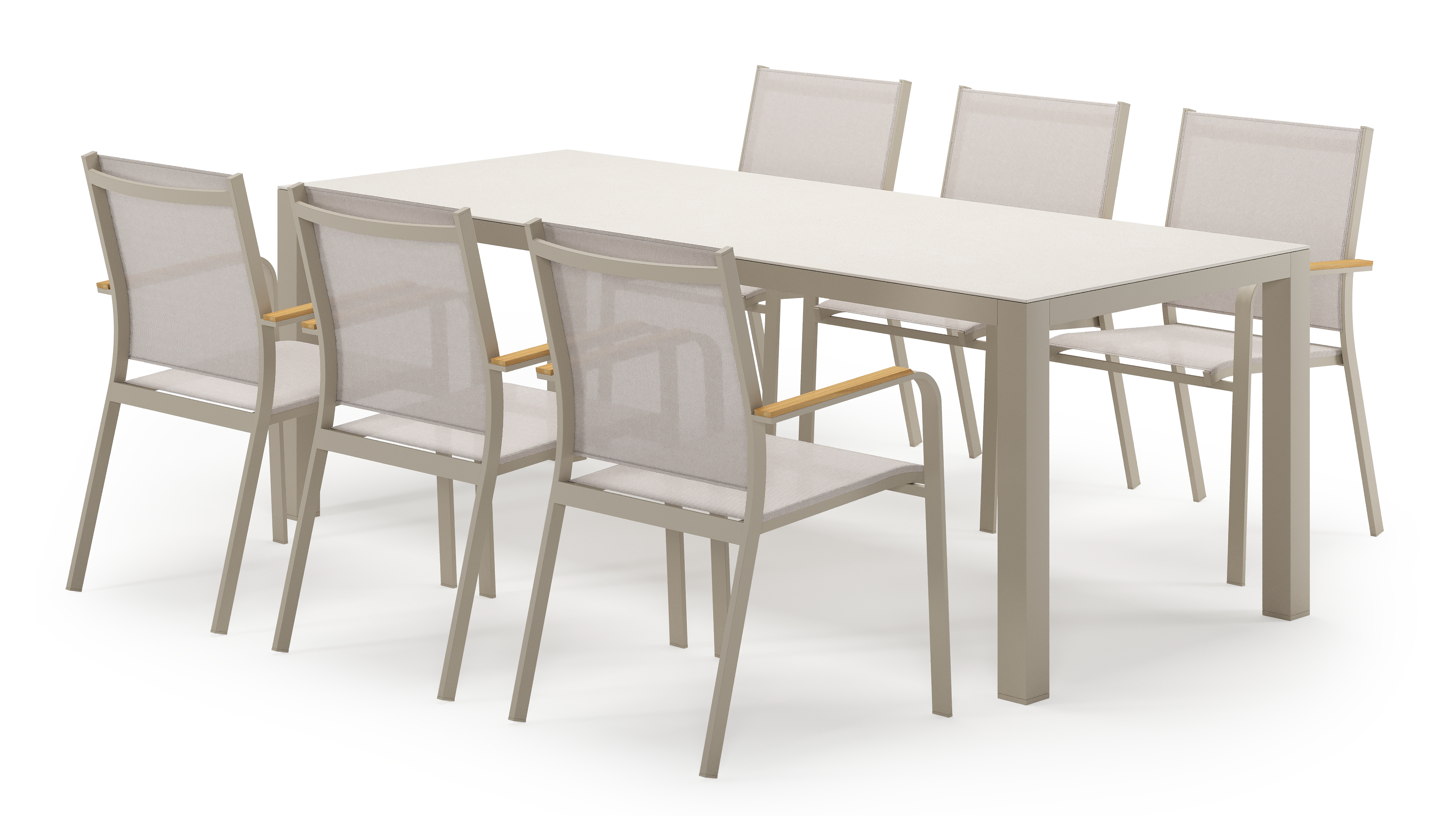 De Varese tuinset heeft een minimalistisch design dat perfect past binnen elke omgeving. De tafel heeft een fijne afwerking en een breder tafelblad, waardoor je geniet van een extra zitplek aan de kopse kanten.