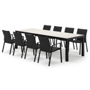 De Varese tuinset heeft een minimalistisch design dat perfect past binnen elke omgeving. De tafel heeft een fijne afwerking en een breder tafelblad, waardoor je geniet van een extra zitplek aan de kopse kanten.