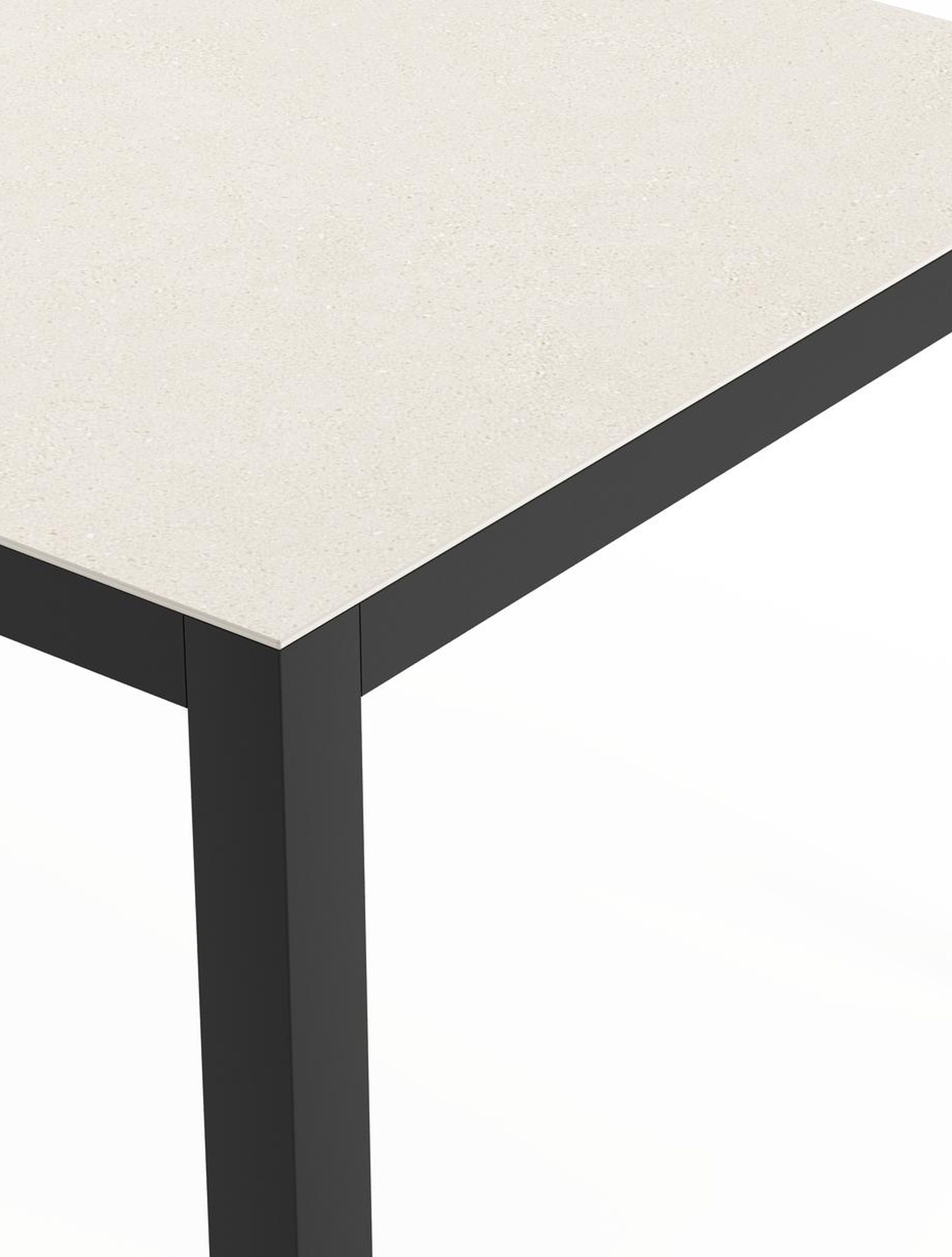 Het frame van de tafel is gemaakt uit roestvrij aluminium, een sterk, maar toch licht materiaal dat makkelijk verplaatsbaar is. Het oppervlak is glad afgewerkt waardoor het geen vuil aantrekt en onderhoudsvriendelijk is. De poedercoating zorgt voor de UV- en weerbestendigheid van je meubel.