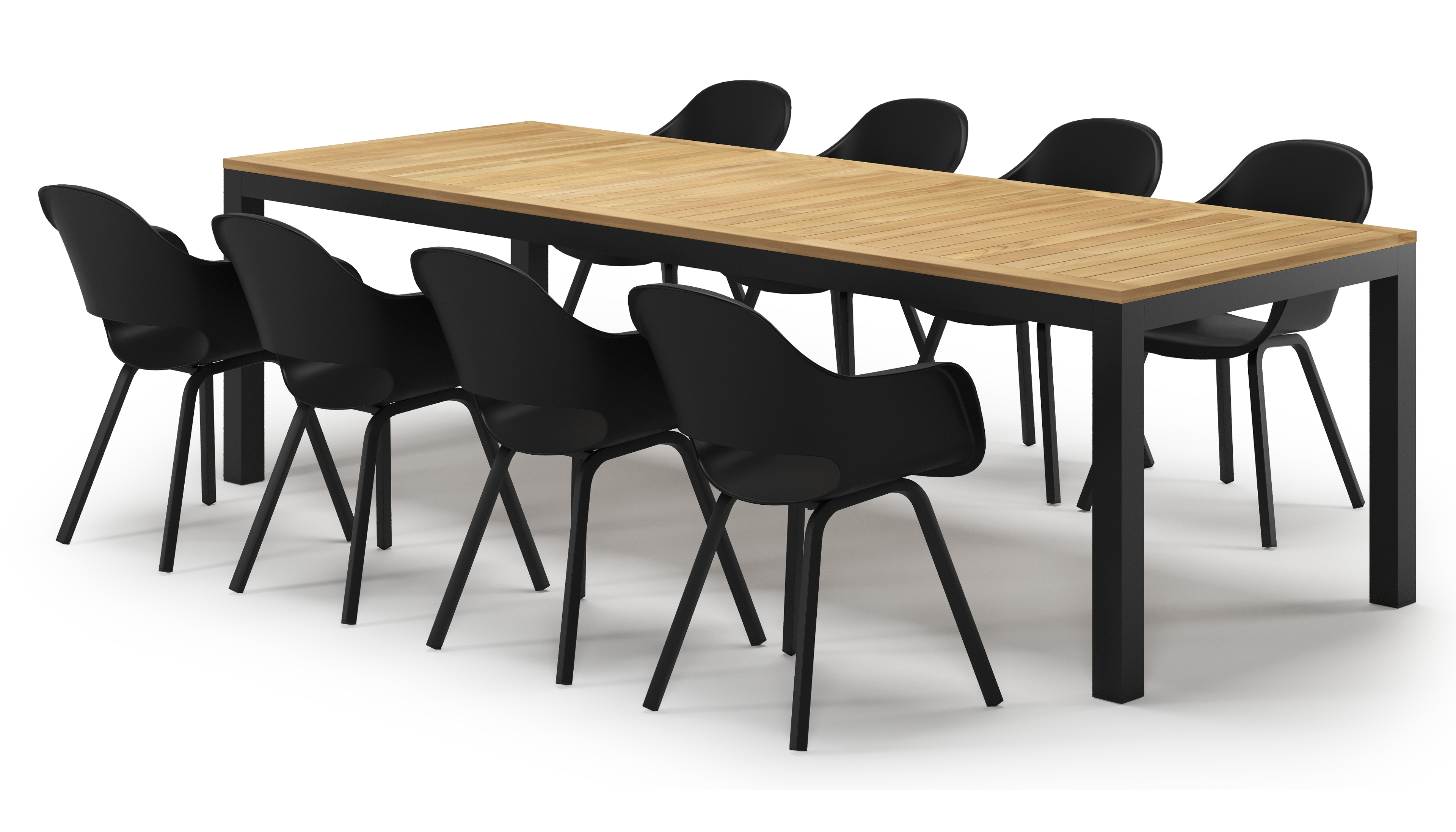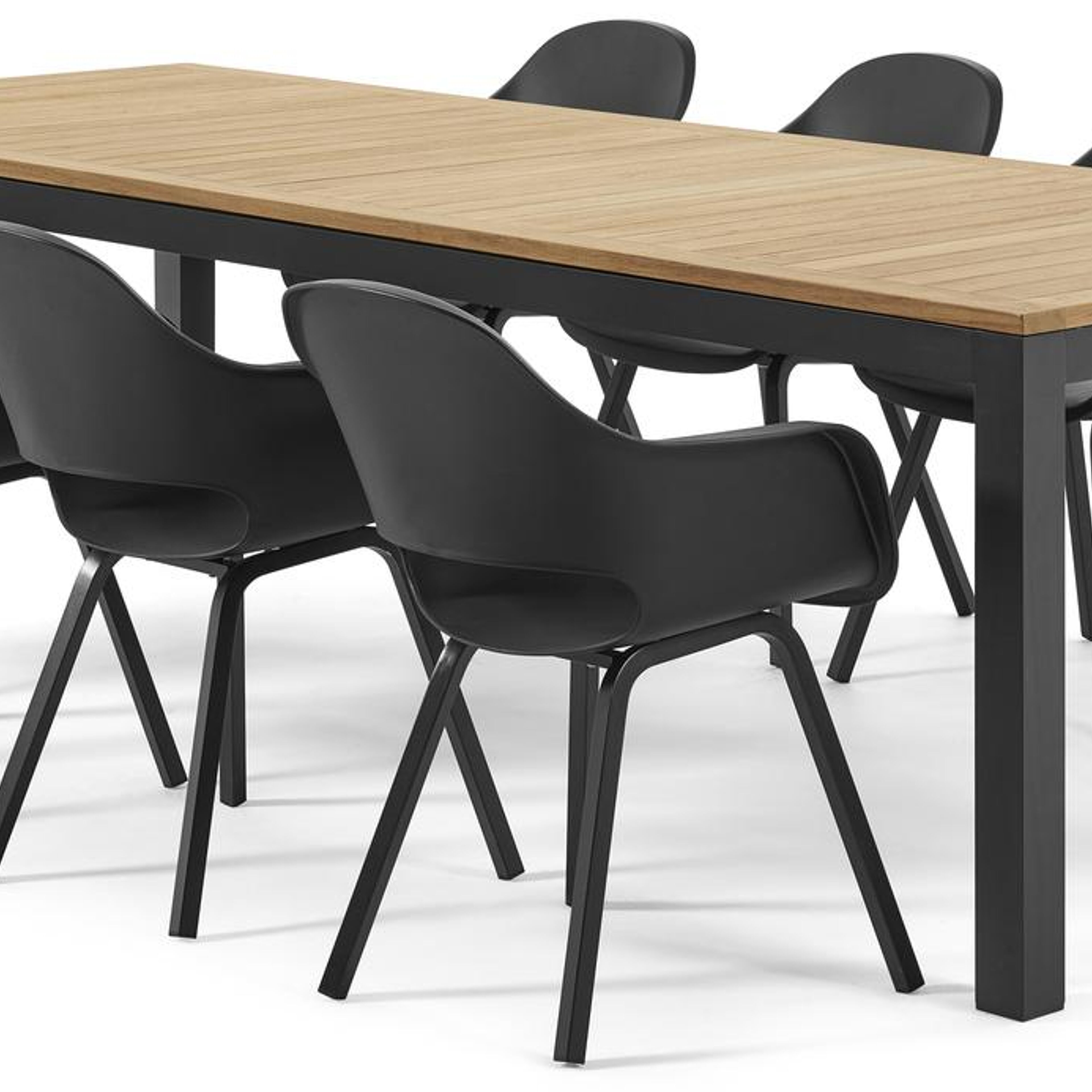 Varese tuinset heeft een minimalistisch design dat perfect past binnen elke omgeving. De tafel heeft een fijne afwerking en een breder tafelblad, waardoor je geniet van een extra zitplek aan de kopse kanten.