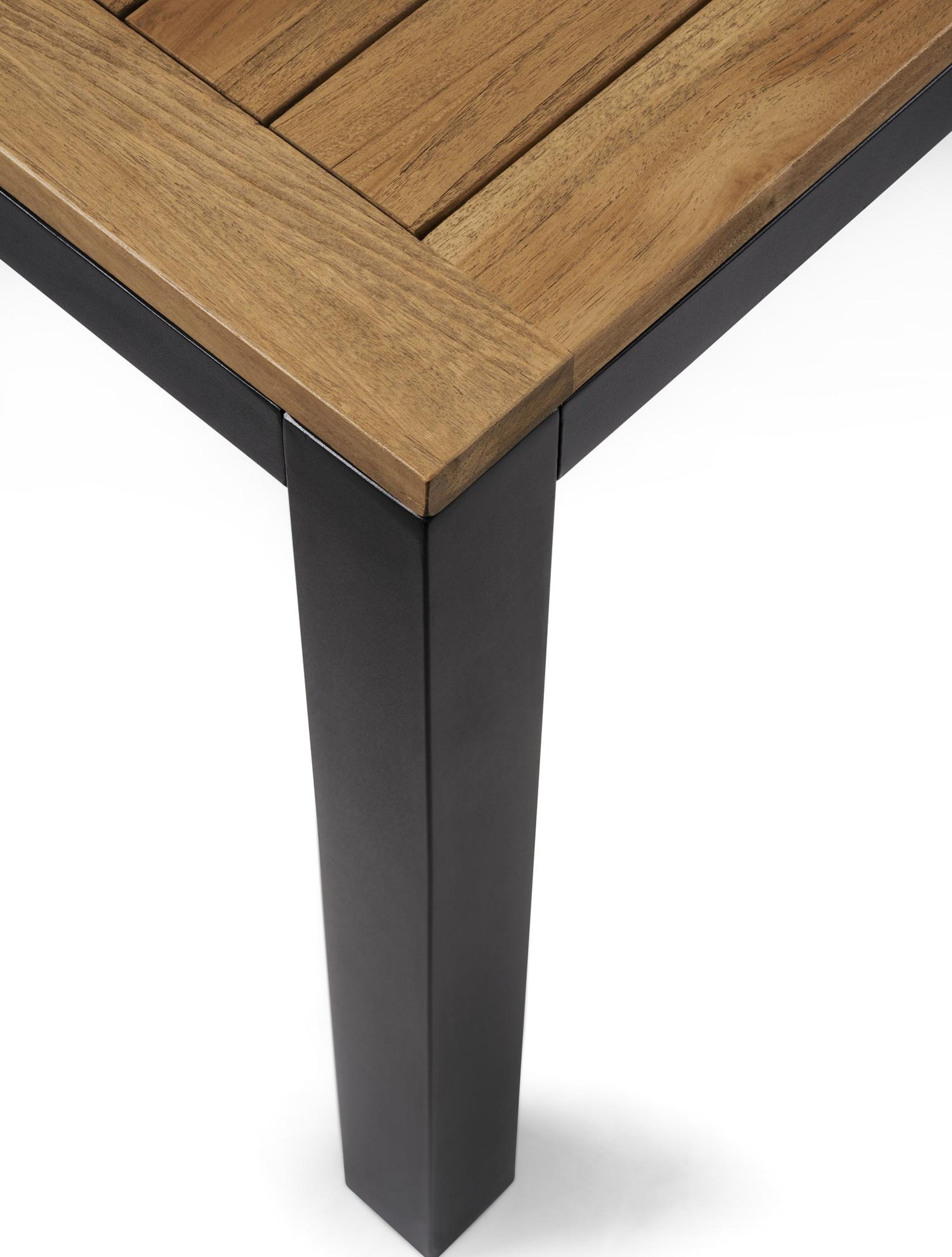 Een tafelblad uit teak staat gelijk aan bijzondere kwaliteit en natuurlijk design. Teak is een kwalitatieve houtsoort gekenmerkt door zijn hardheid. Aangezien hout leeft, kan de structuur of kleur licht anders zijn dan op het beeld weergegeven.