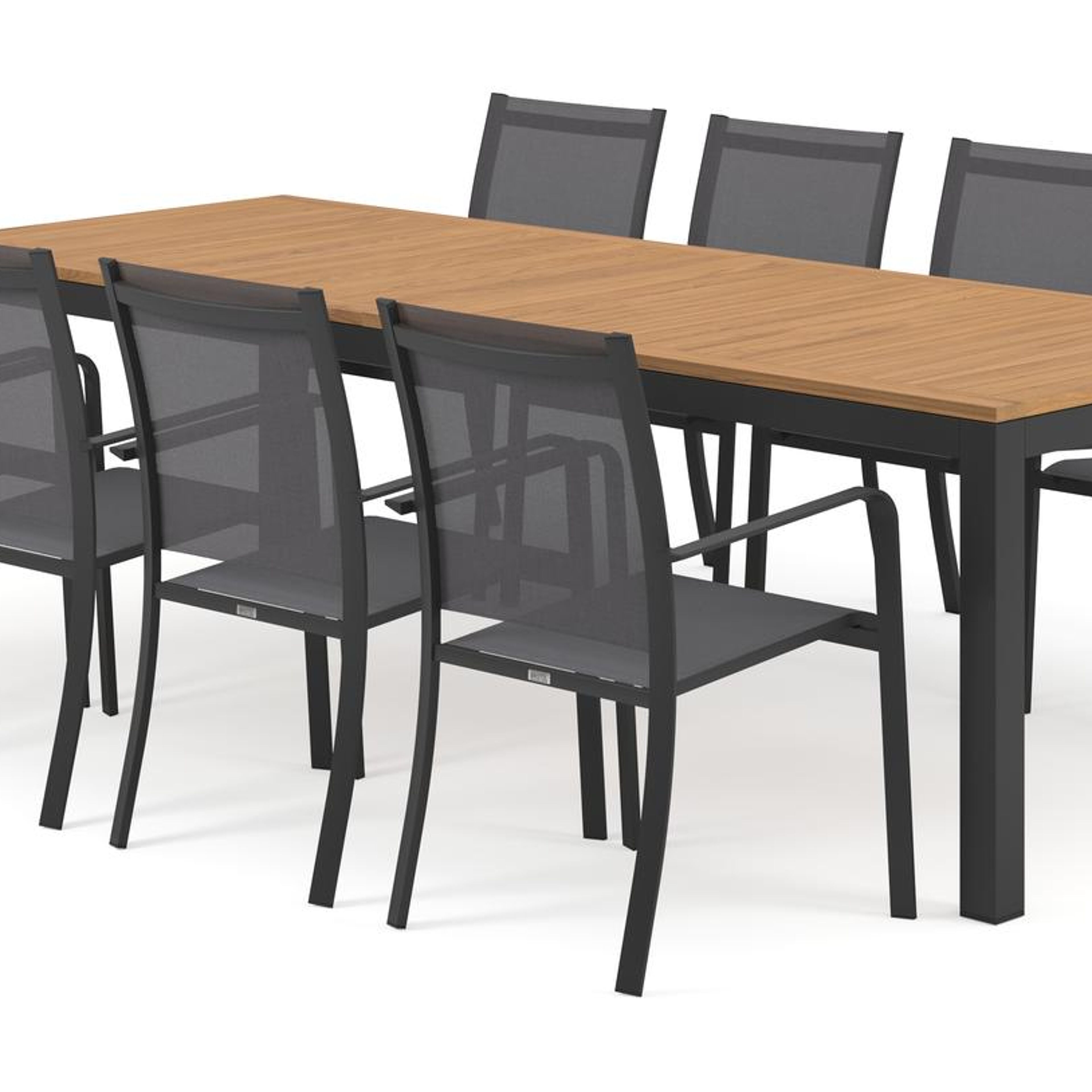 Varese tuinset heeft een minimalistisch design dat perfect past binnen elke omgeving. De tafel heeft een fijne afwerking en een breder tafelblad, waardoor je geniet van een extra zitplek aan de kopse kanten.