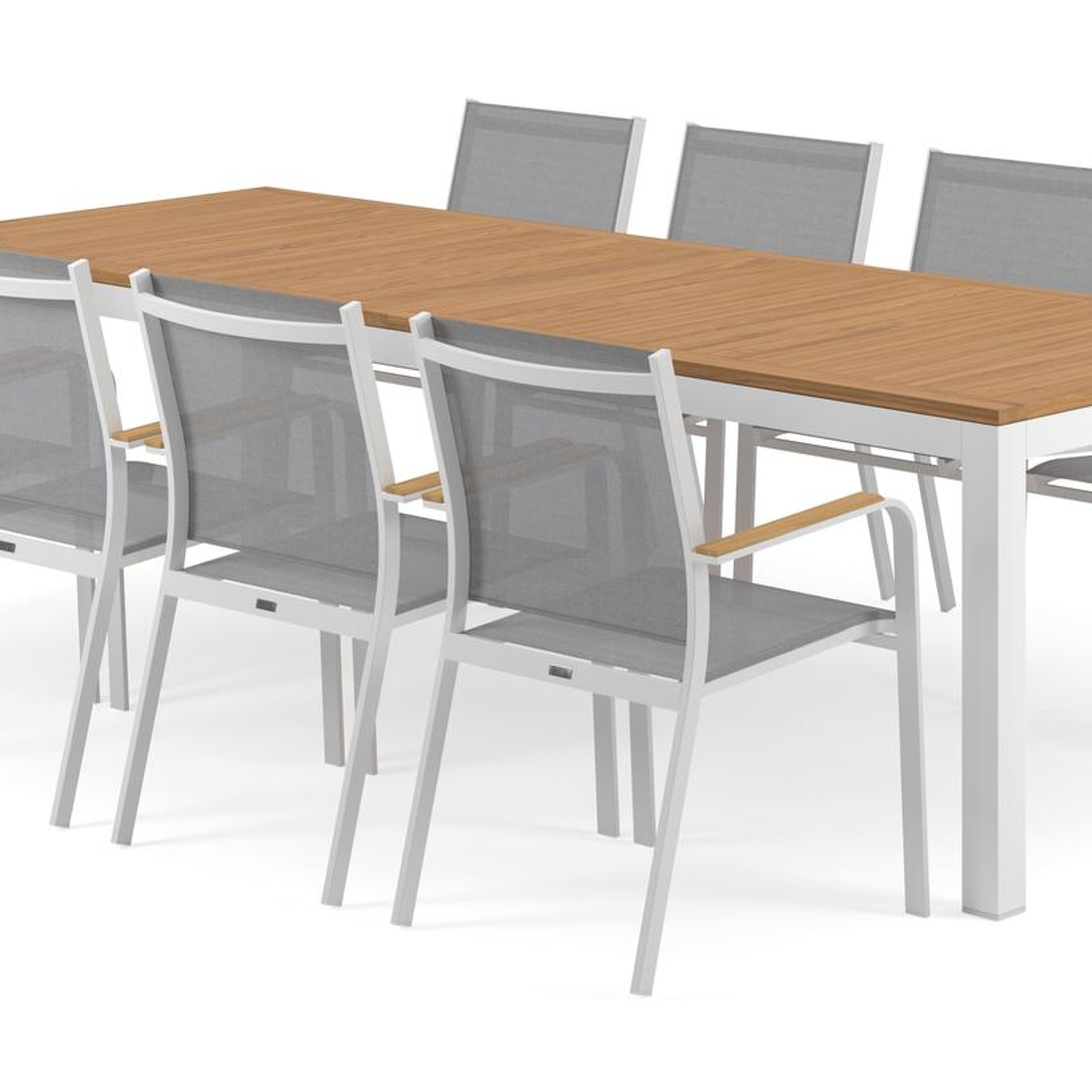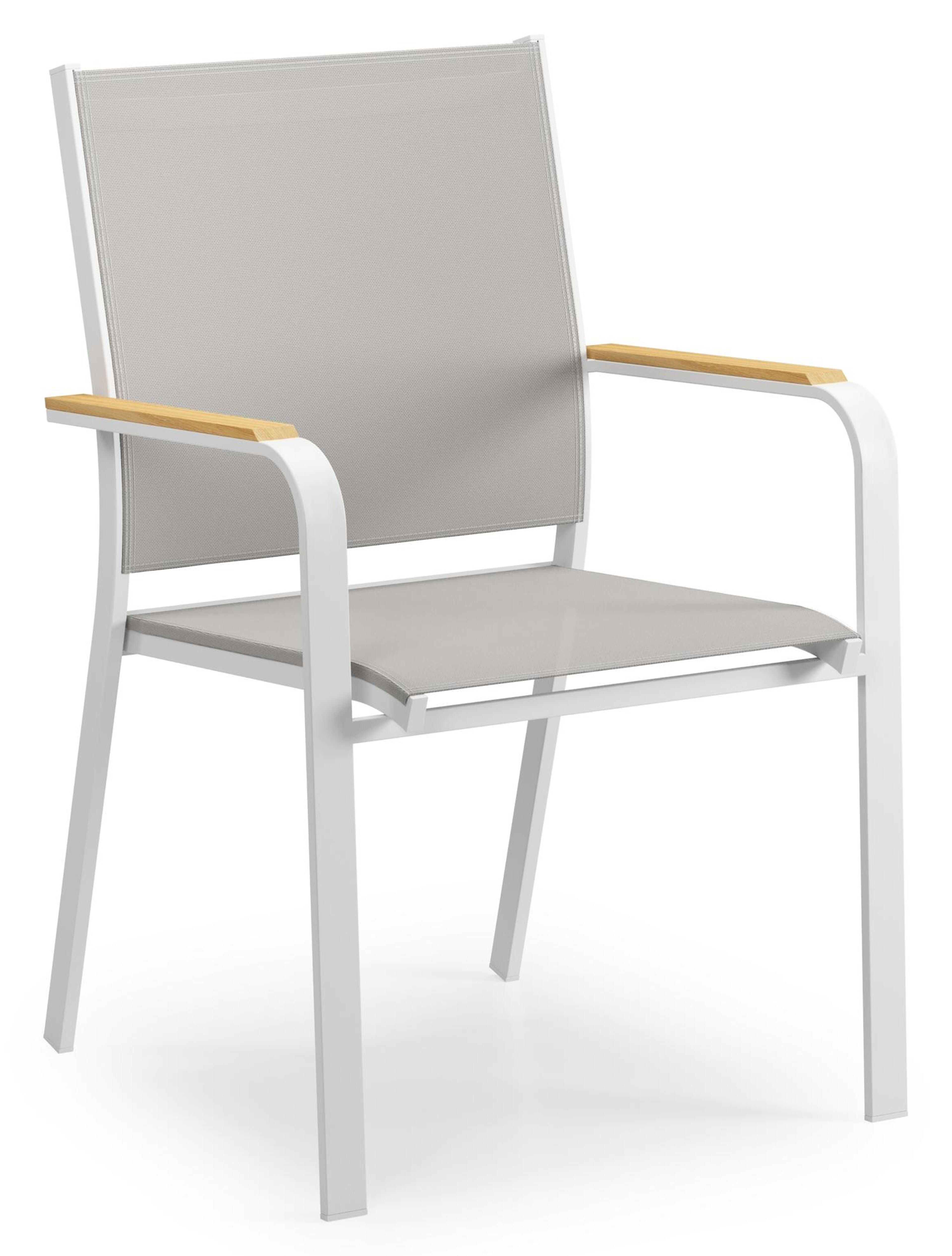 De Amalfi stoel is een stijlvolle stoel met afgeronde armleuningen en heeft een natuurlijke look uit door de armleuningen in teak. De Amalfi stoel heeft een frame uit roestvrij aluminium. De zitting en rugleuning zijn gemaakt uit stevige textilene, een stijlvol en onderhoudsvriendelijk materiaal. Verkrijgbaar in verschillende kleuren. De stoel is stapelbaar en dus makkelijk op te bergen.