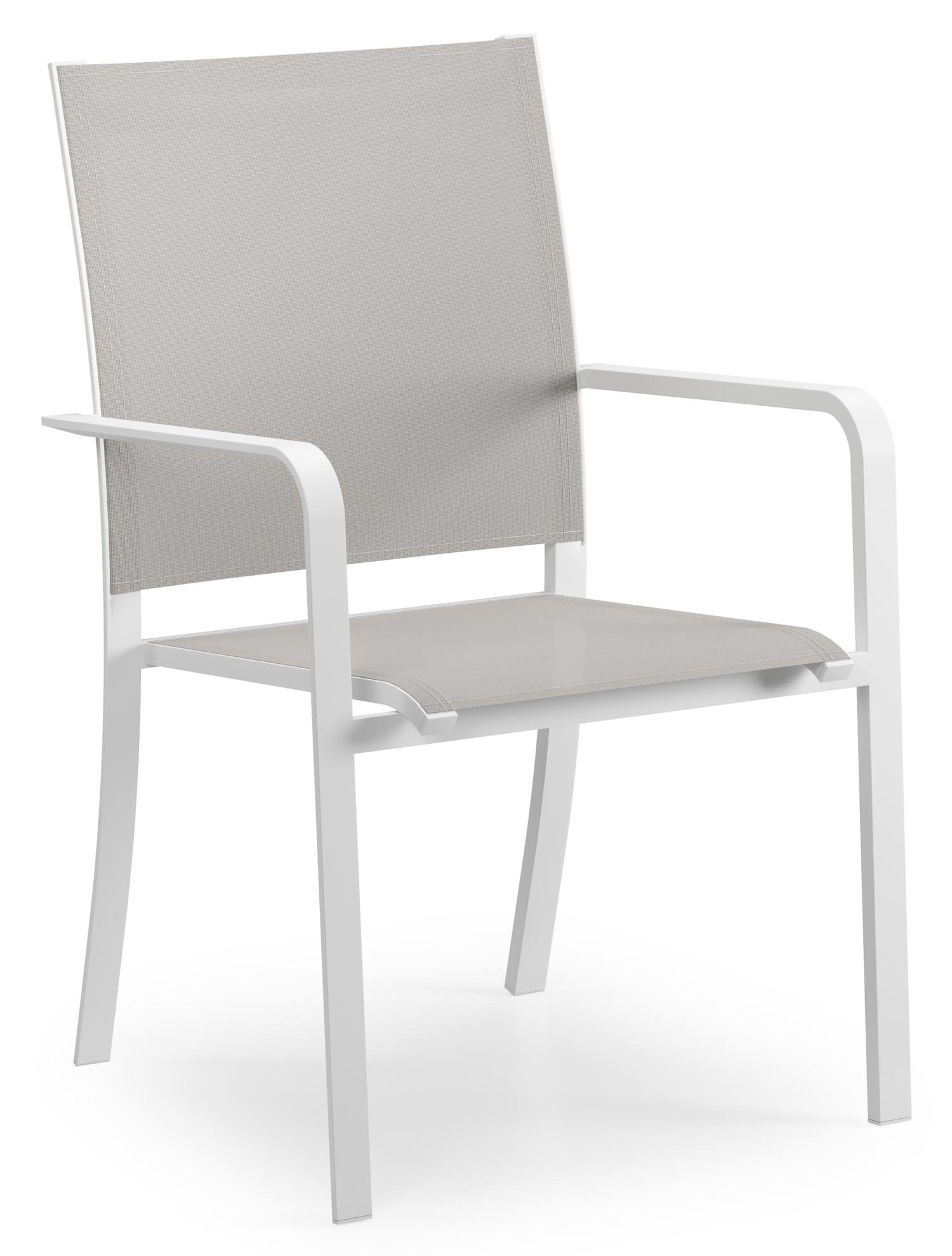 De Calobra stoel heeft een naar achteren gebogen rugleuning en afgeronde armleuningen met een optimaal zitcomfort. Het frame van de stoel is gemaakt uit roestvrij aluminium. De zitting en rugleuning zijn gemaakt uit stevige textilene, een stijlvol en onderhoudsvriendelijk materiaal. Verkrijgbaar in verschillende kleuren. De stoel is stapelbaar en dus makkelijk op te bergen.