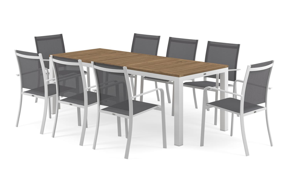 Varese tuinset heeft een minimalistisch design dat perfect past binnen elke omgeving. De tafel heeft een fijne afwerking en een breder tafelblad, waardoor je geniet van een extra zitplek aan de kopse kanten.