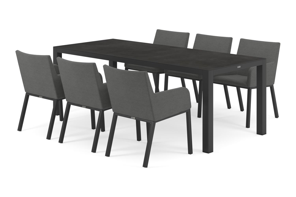De Varese tuinset heeft een minimalistisch design dat perfect past binnen elke omgeving. De tafel heeft een fijne afwerking en een breder tafelblad, waardoor je geniet van een extra zitplek aan de kopse kanten.