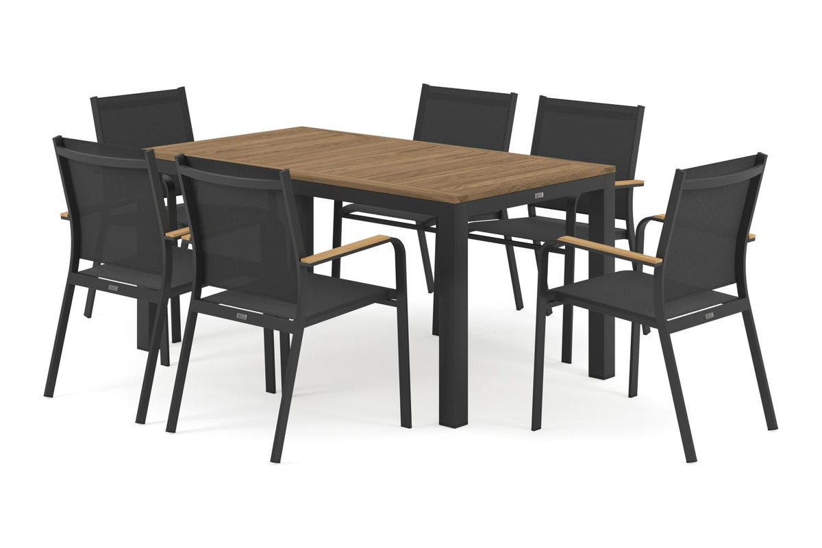 De Varese tuinset heeft een minimalistisch design dat perfect past binnen elke omgeving. De tafel heeft een fijne afwerking en een breder tafelblad, waardoor je geniet van een extra zitplek aan de kopse kanten.