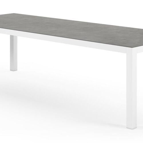 Het frame van de tafel is gemaakt uit roestvrij aluminium, een sterk, maar toch licht materiaal dat makkelijk verplaatsbaar is. Het oppervlak is glad afgewerkt waardoor het geen vuil aantrekt en onderhoudsvriendelijk is. De poedercoating zorgt voor de UV- en weerbestendigheid van je meubel.