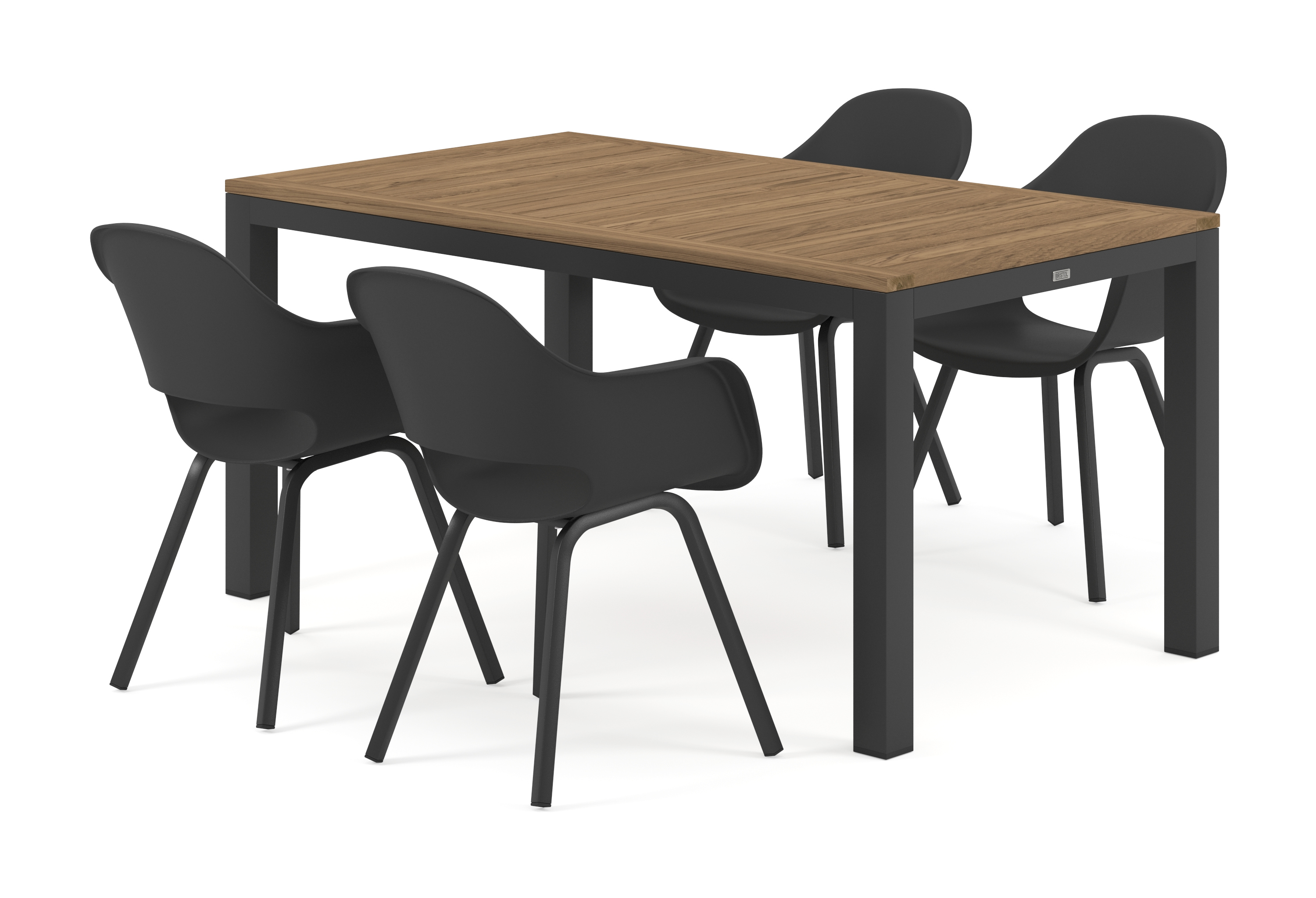 Varese tuinset heeft een minimalistisch design dat perfect past binnen elke omgeving. De tafel heeft een fijne afwerking en een breder tafelblad, waardoor je geniet van een extra zitplek aan de kopse kanten.