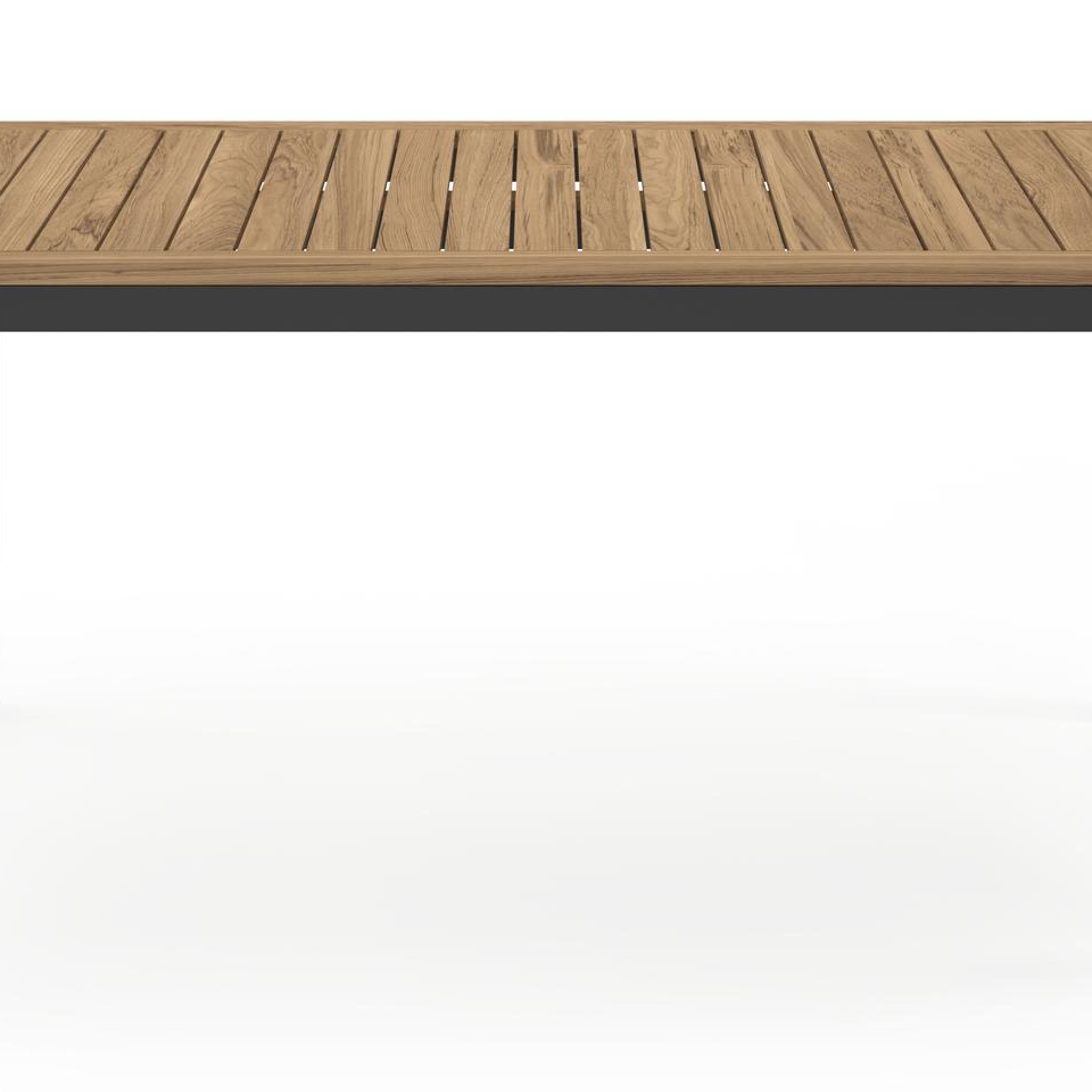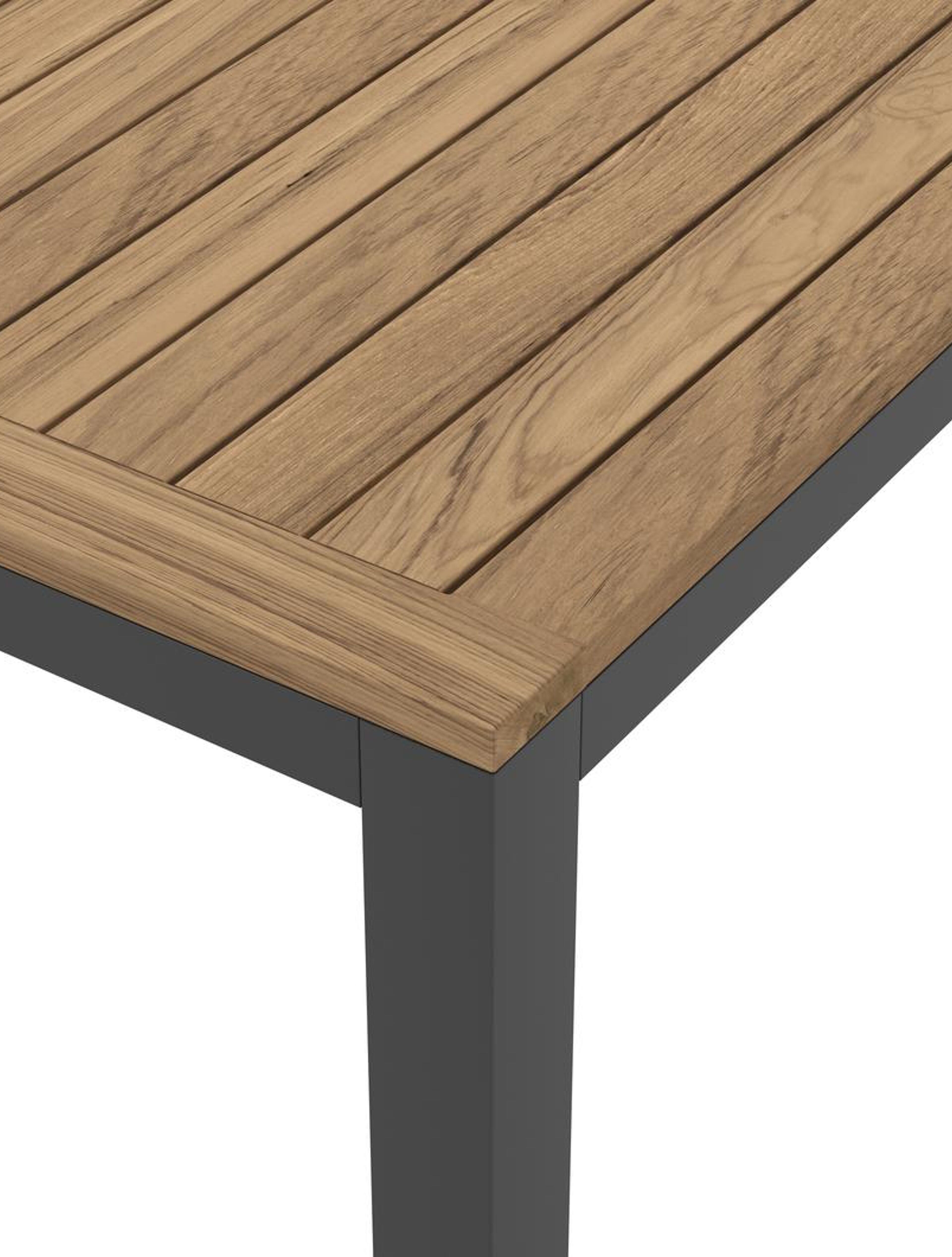Een tafelblad uit teak staat gelijk aan bijzondere kwaliteit en natuurlijk design. Teak is een kwalitatieve houtsoort gekenmerkt door zijn hardheid. Aangezien hout leeft, kan de structuur of kleur licht anders zijn dan op het beeld weergegeven.