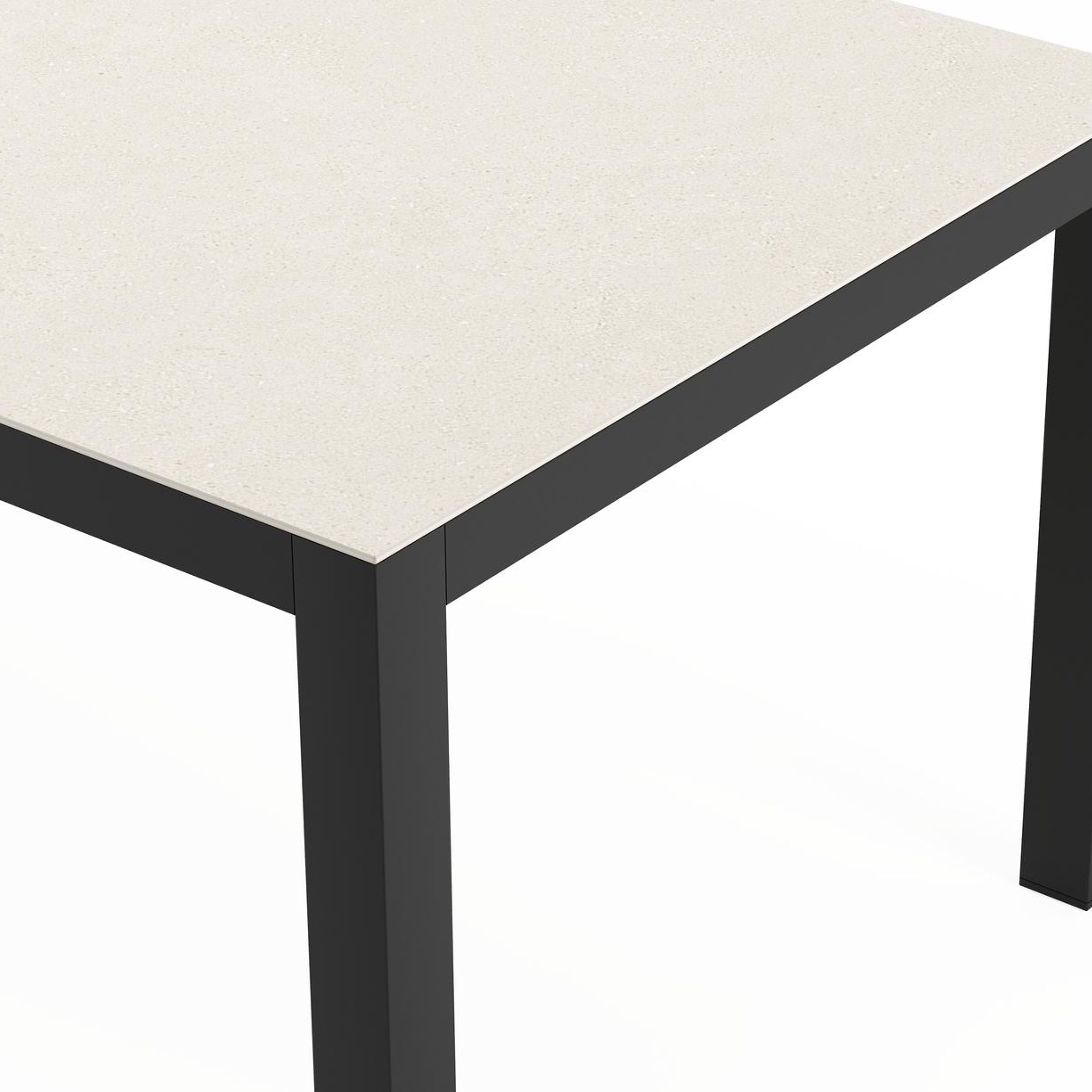 Het frame van de tafel is gemaakt uit roestvrij aluminium, een sterk, maar toch licht materiaal dat makkelijk verplaatsbaar is. Het oppervlak is glad afgewerkt waardoor het geen vuil aantrekt en onderhoudsvriendelijk is. De poedercoating zorgt voor de UV- en weerbestendigheid van je meubel.