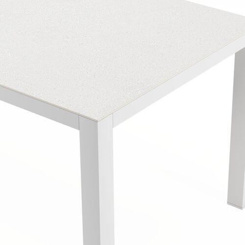 Het frame van de tafel is gemaakt uit roestvrij aluminium, een sterk, maar toch licht materiaal dat makkelijk verplaatsbaar is. Het oppervlak is glad afgewerkt waardoor het geen vuil aantrekt en onderhoudsvriendelijk is. De poedercoating zorgt voor de UV- en weerbestendigheid van je meubel.