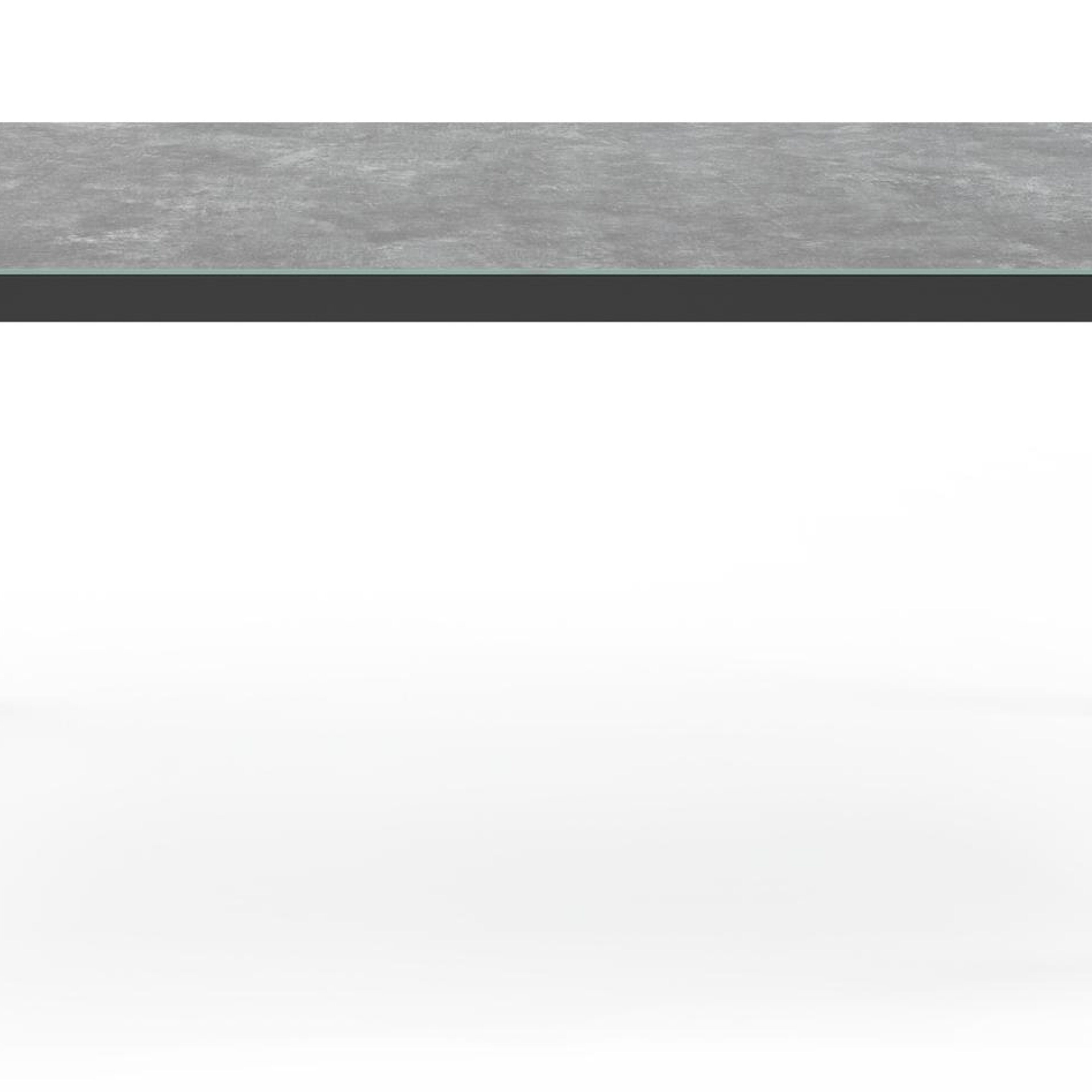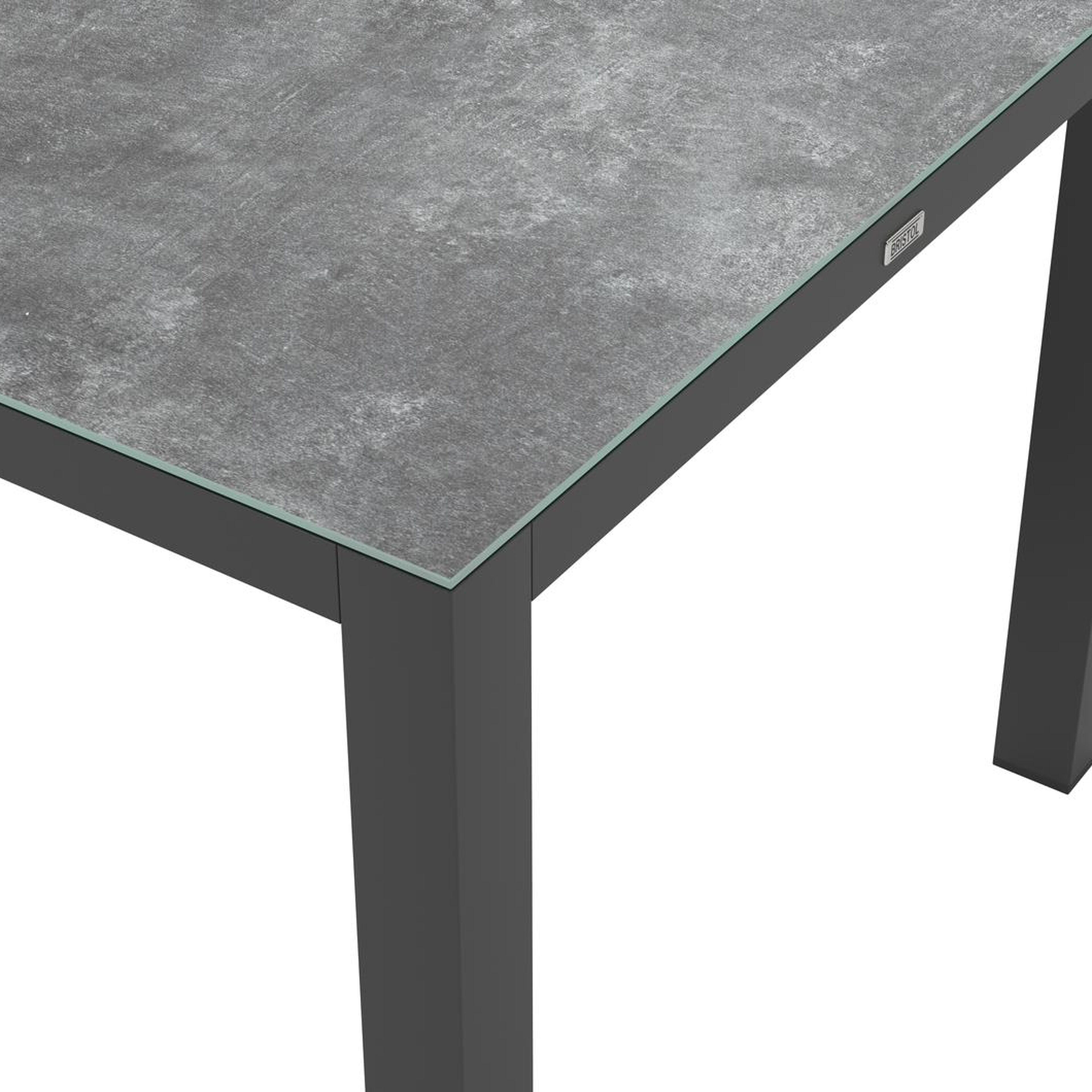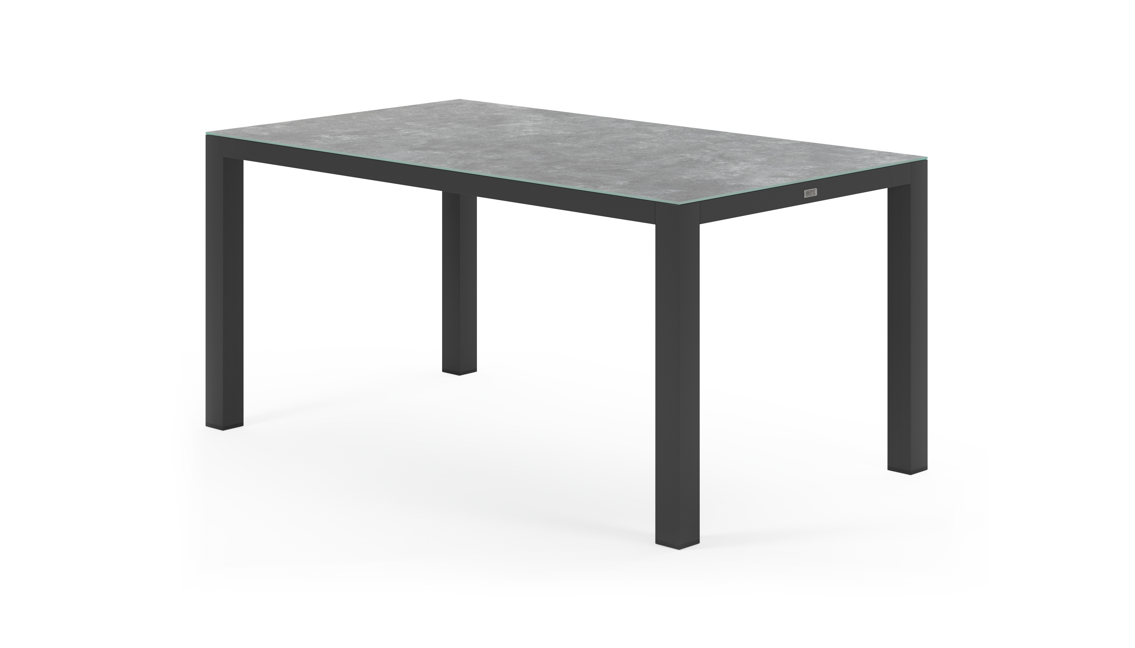 Een tafelblad uit keramisch glas bestaat uit een glazen oppervlak waarop een keramische laag gebakken wordt. Je krijgt zo de look van een volkeramisch blad op het glas. Dankzij de keramische laag is het tafelblad krasbestendig en eenvoudig schoon te maken.