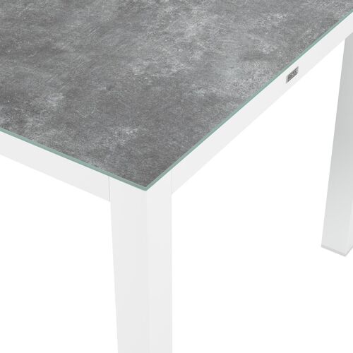 Een tafelblad uit keramisch glas bestaat uit een glazen oppervlak waarop een keramische laag gebakken wordt. Je krijgt zo de look van een volkeramisch blad op het glas. Dankzij de keramische laag is het tafelblad krasbestendig en eenvoudig schoon te maken.