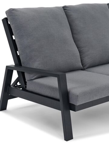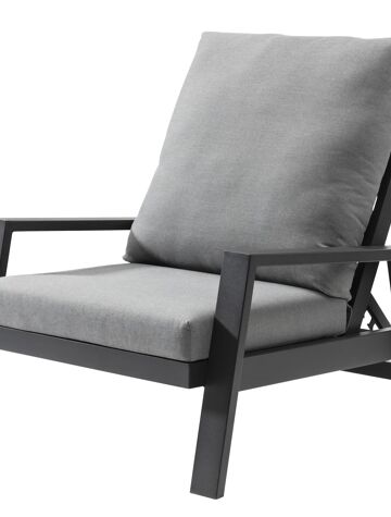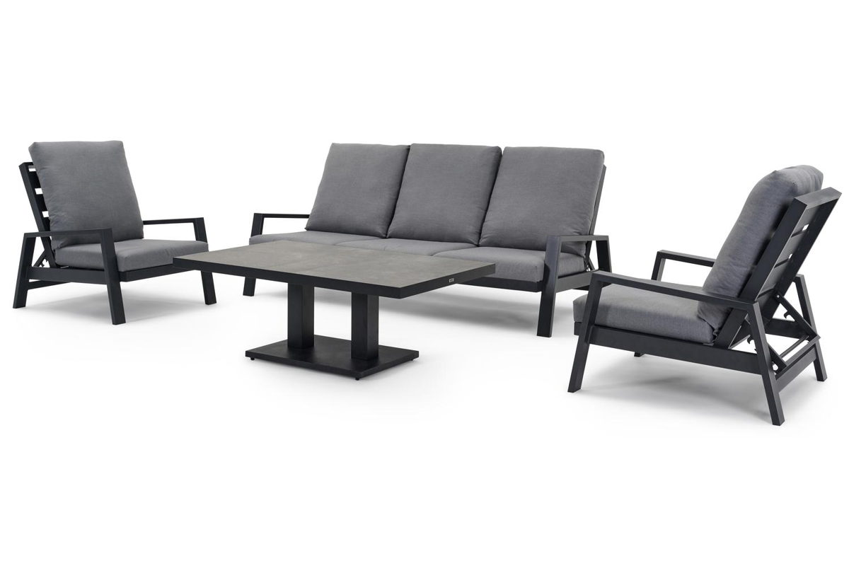 De Veneto loungeset is de perfecte lounge wanneer je zoekt naar een strak design met het ideale zitcomfort en ondersteuning. Het frame is gemaakt uit roestvrij aluminium, een stevig en licht materiaal. De rugleuning van de 1-zit en de buitenste zitplaatsen van de 3-zit zijn verstelbaar. de kussens in Weather+ Softtouch zijn inclusief. Daarnaast is de Pop-up loungetafel verstelbaar van hoogte en met keramisch blad, ook inclusief. Met de Veneto loungeset kan je volop genieten van je buitenmoment met de nadruk op kwaliteit en zitcomfort.