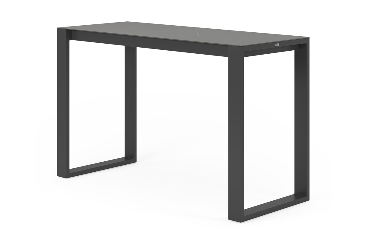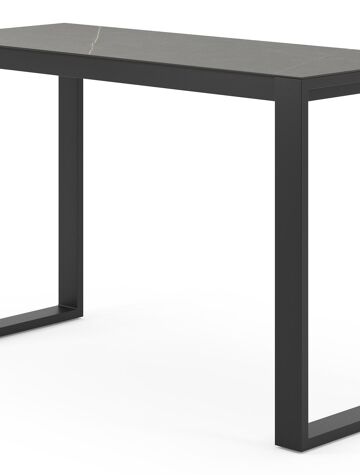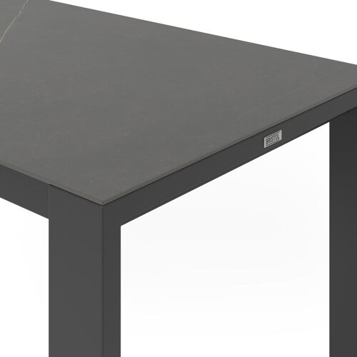 Klaar voor een gezellig apero moment in de tuin? Met de Verato bartafel doe je dit in stijl. De Verato bartafel heeft een strak, U-vormig onderstel. Het frame is gemaakt van aluminium een licht, maar sterk en roestvrij materiaal dat zeer geschikt is voor tuinmeubelen. Deze tafel is afgewerkt met een Calatorao tafelblad. Die is geïnspireerd op een grijze kalksteen. Het blad heeft rustige marmerlook dankzij de gouden aders op de donkergrijze kleurschakeringen. Het voordeel van volkeramische tafelbladen is dat ze krasbestendig zijn en bestand zijn tegen alle weersomstandigheden.