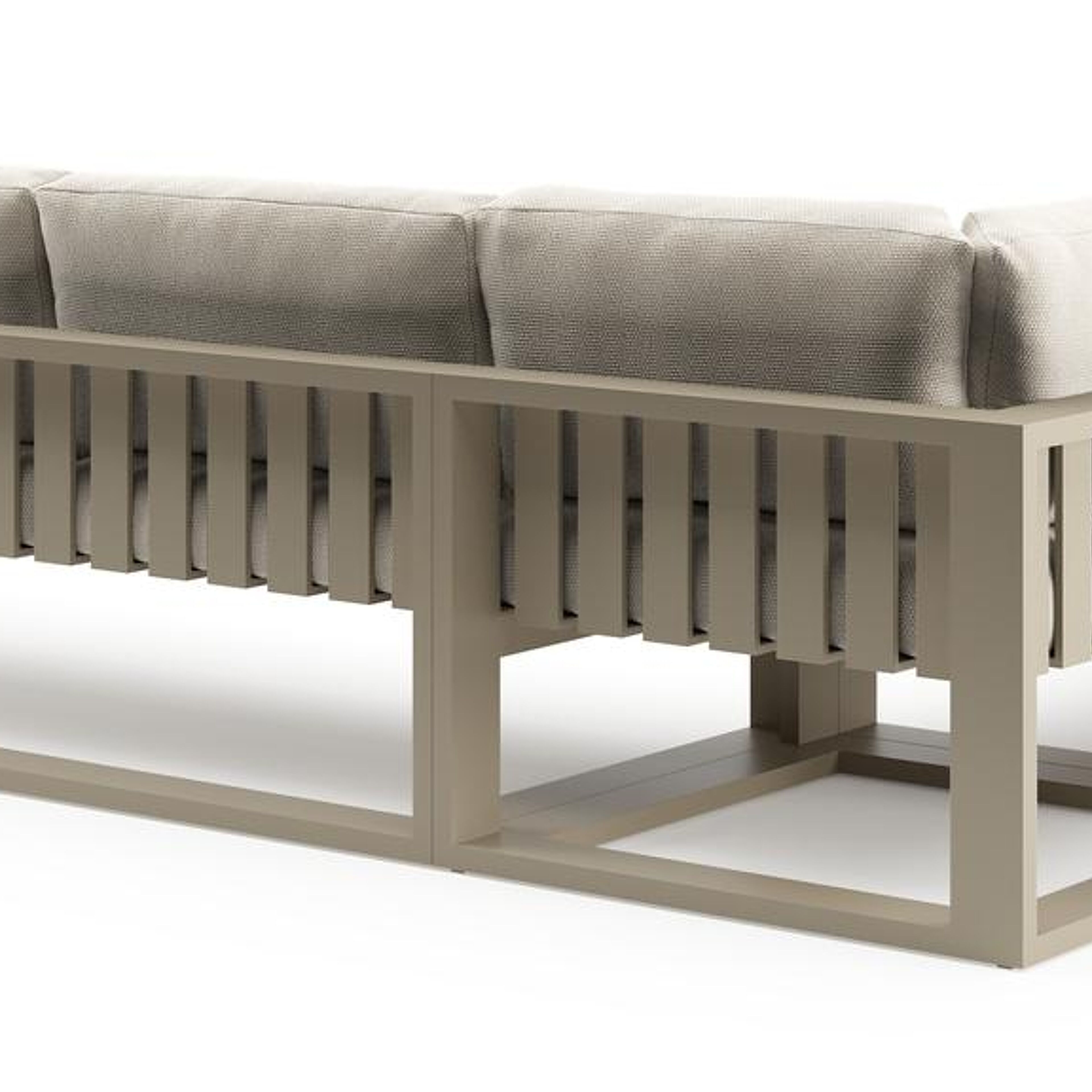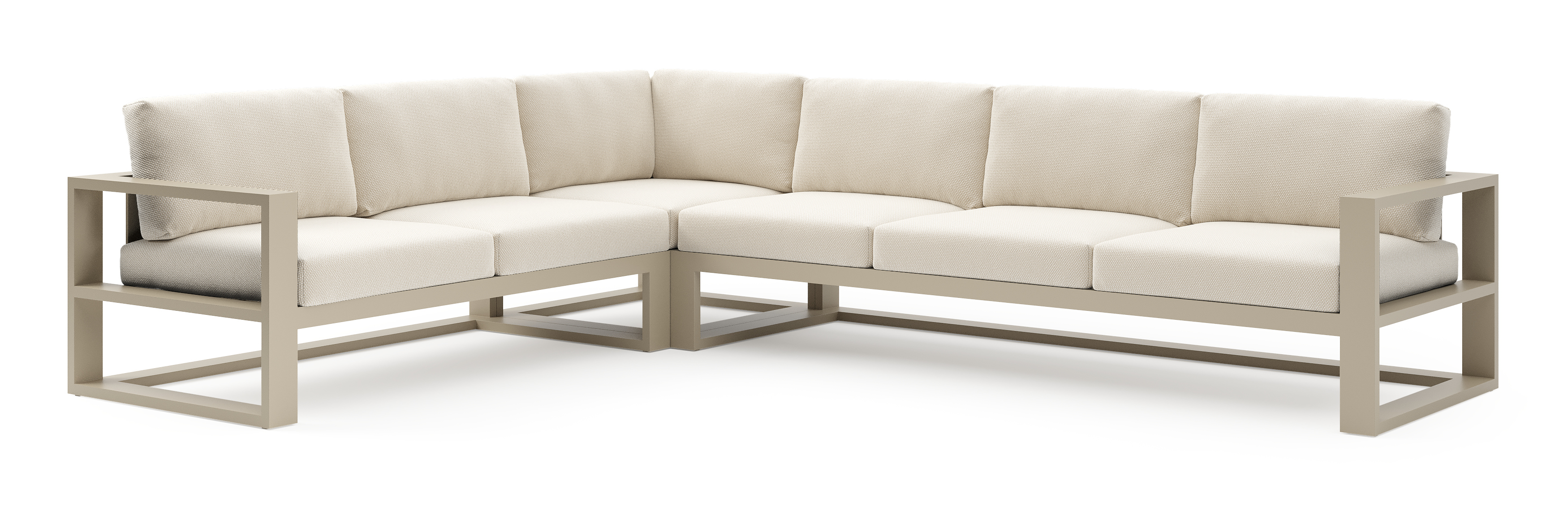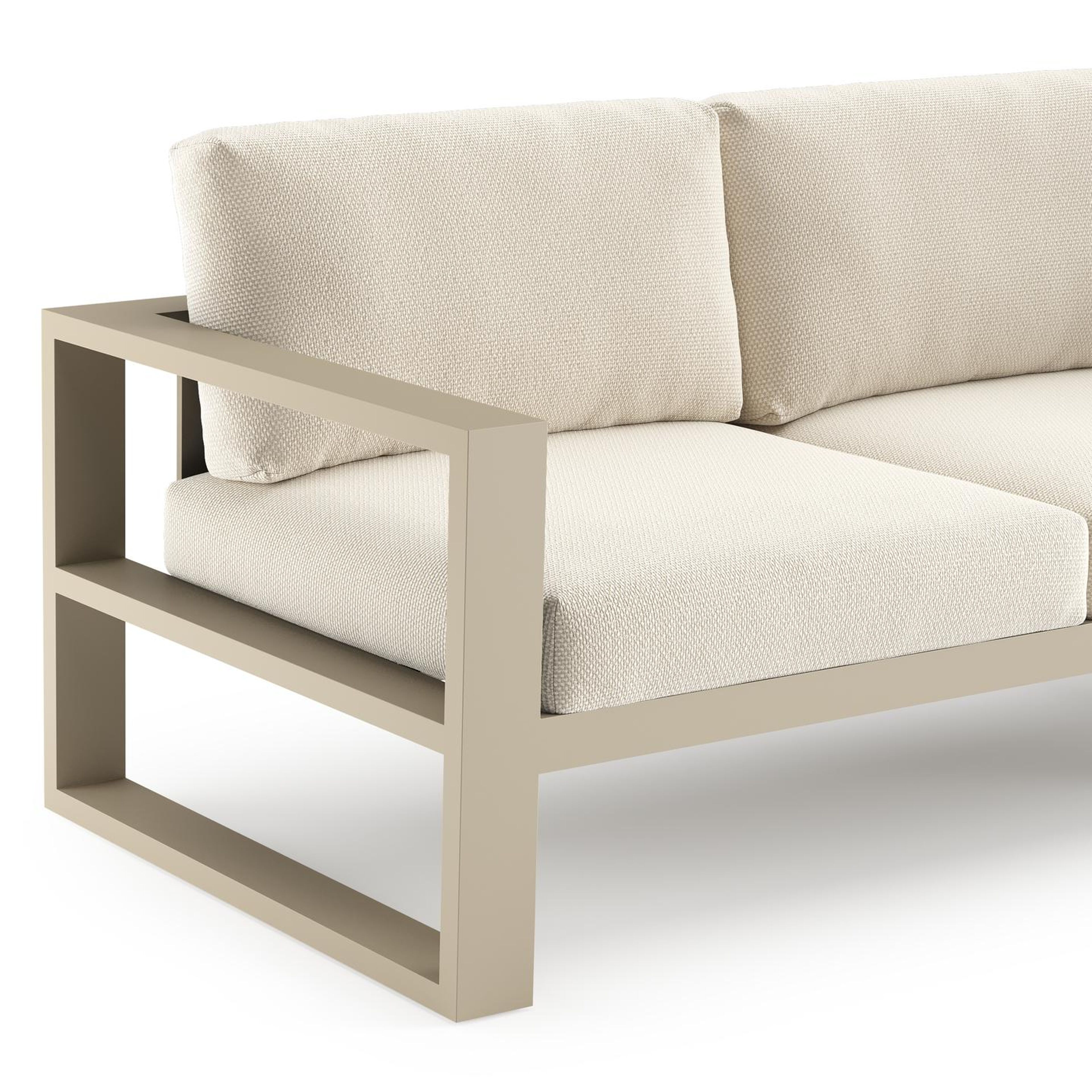 Verato loungehoek in beige aluminium met althea off white all weather cosytica kussen | Exterioo tuinmeubelen