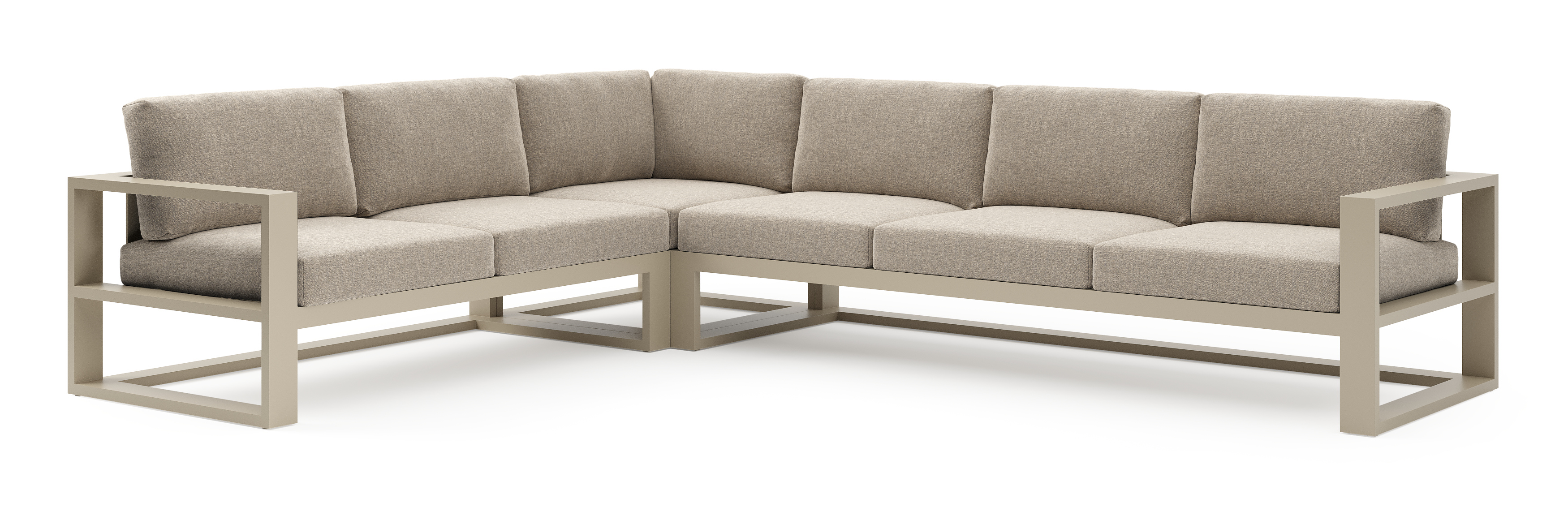 Verato loungehoek in beige aluminium met chartres pewter all weather sunbrella® luxe kussen | Exterioo tuinmeubelen