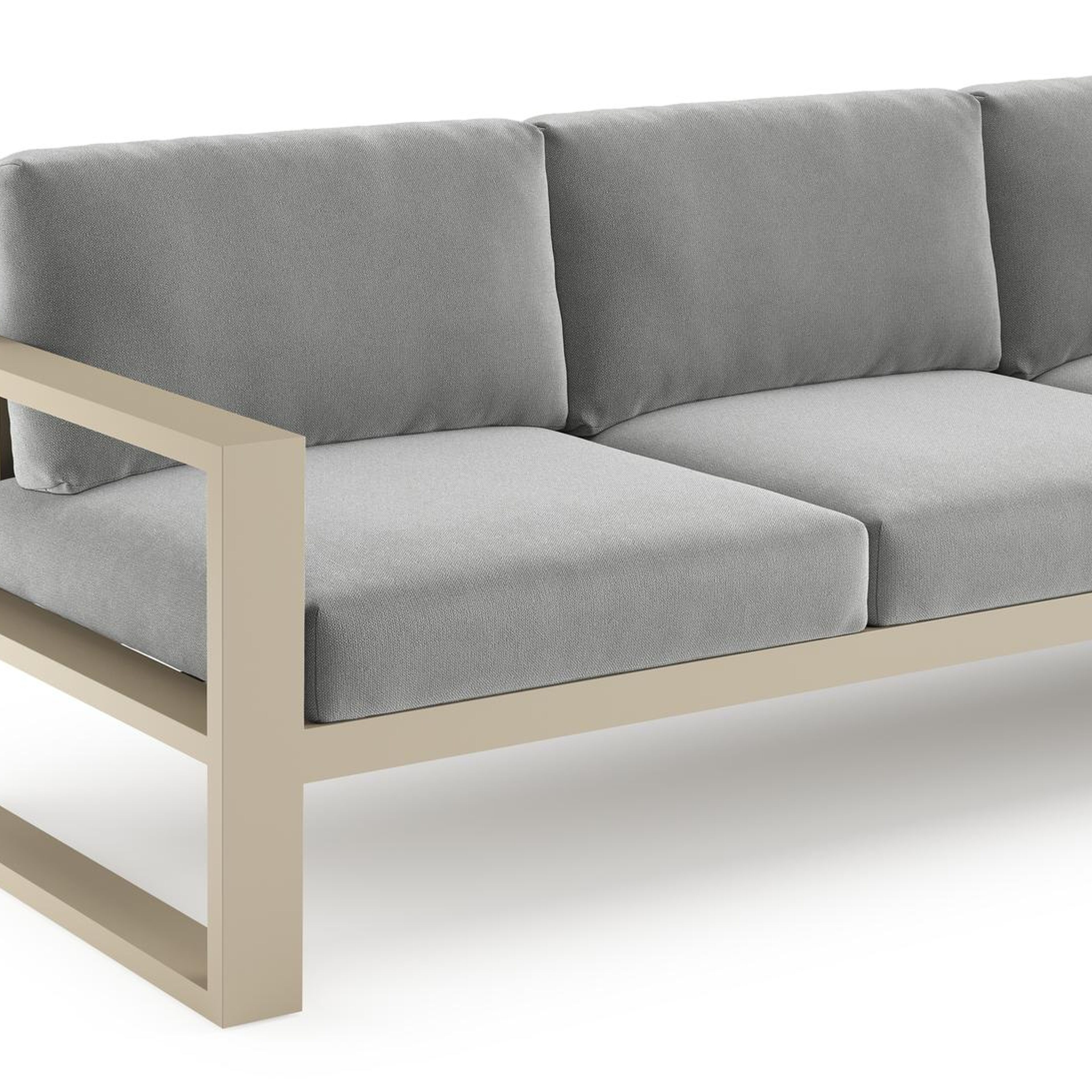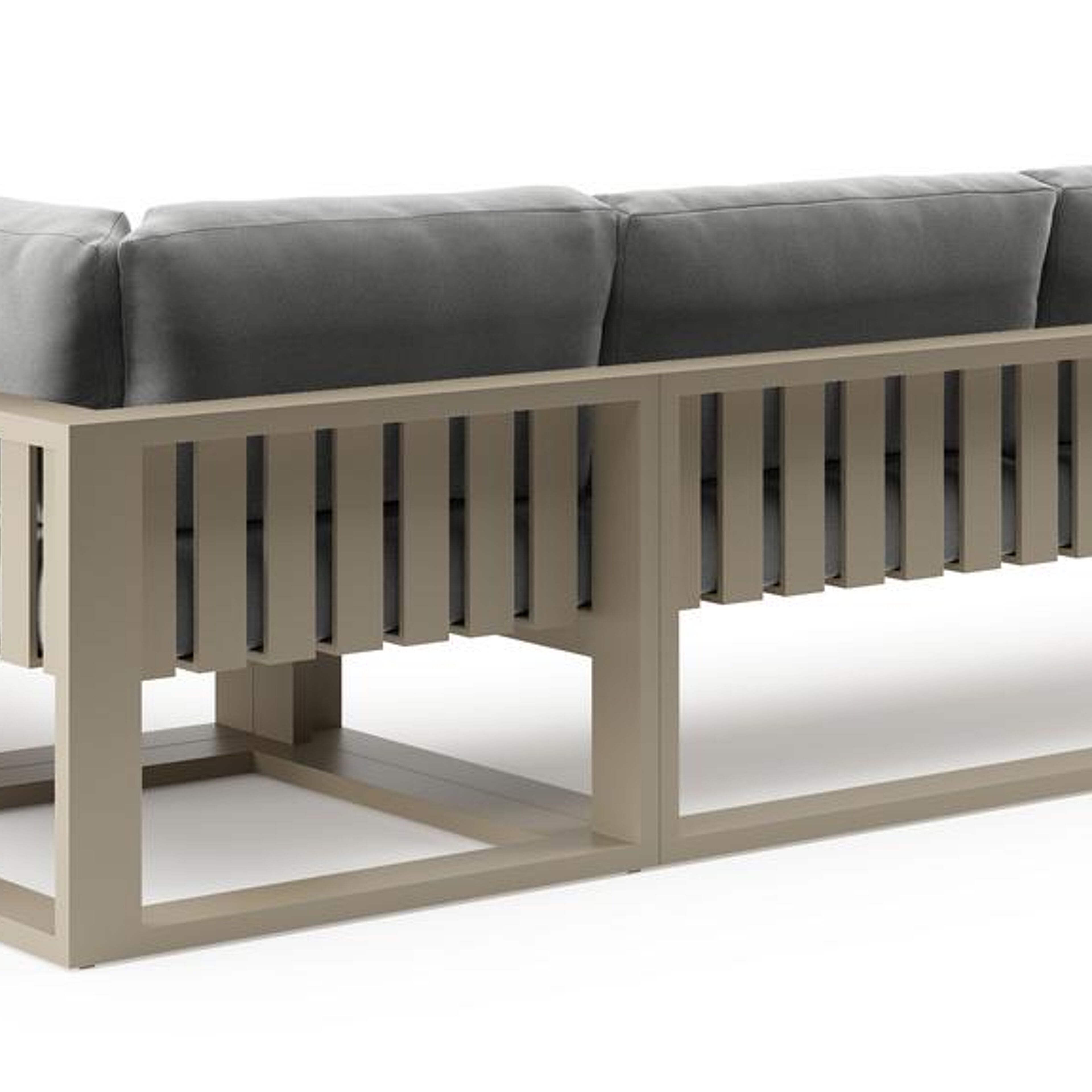 Verato loungehoek in beige aluminium met savane grey all weather sunbrella® luxe kussen | Exterioo tuinmeubelen