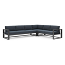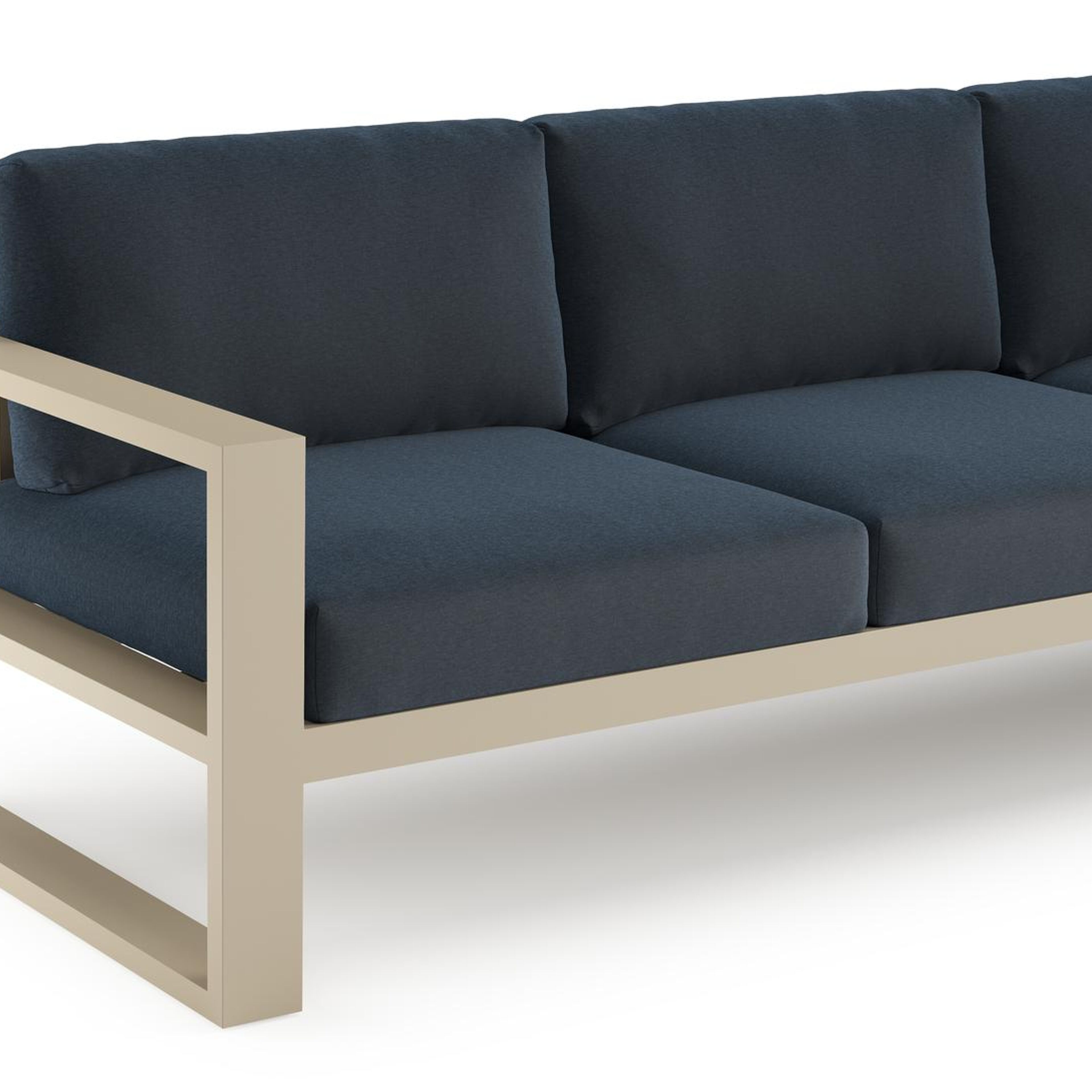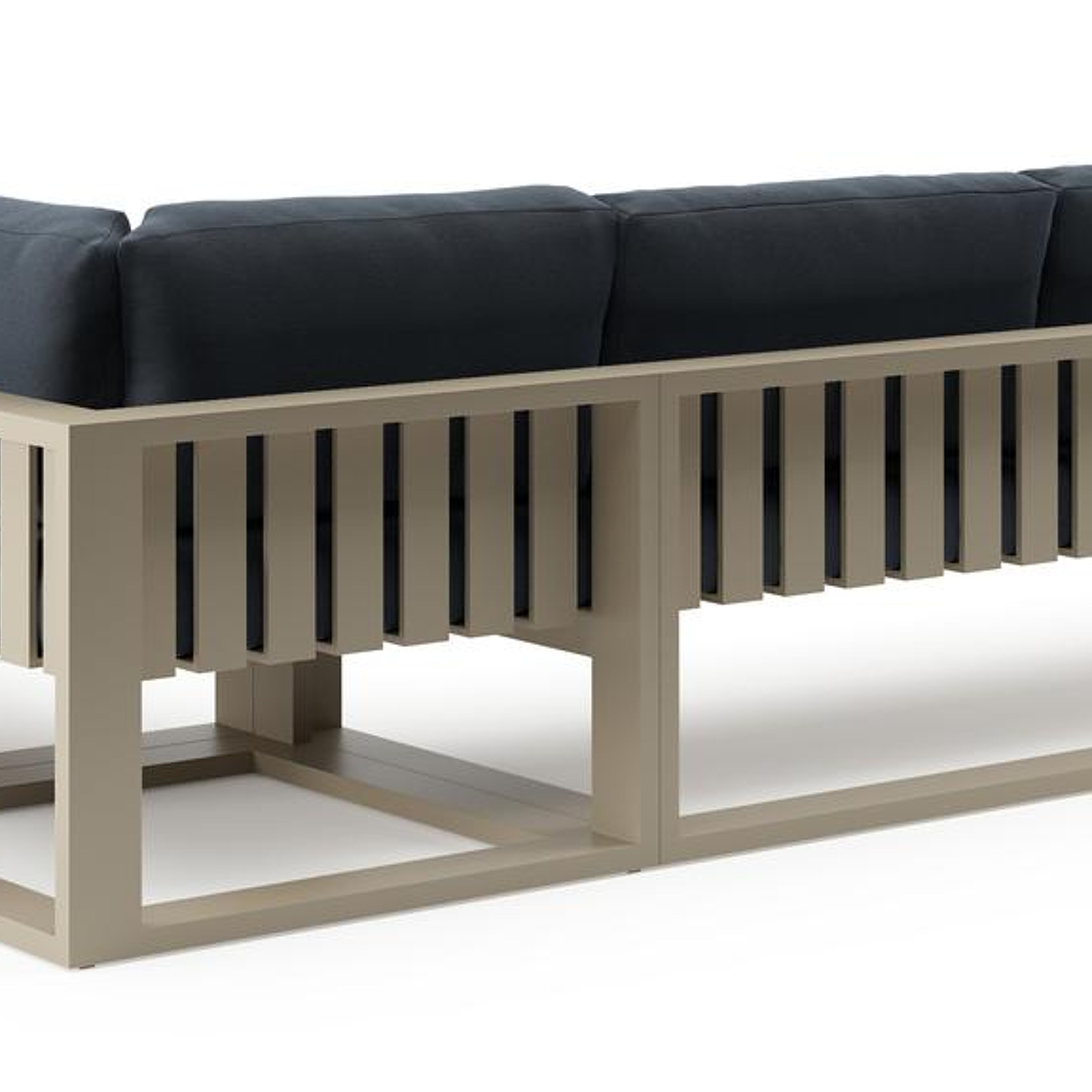 Verato loungehoek in beige aluminium met heritage indigo all weather sunbrella® luxe kussen | Exterioo tuinmeubelen