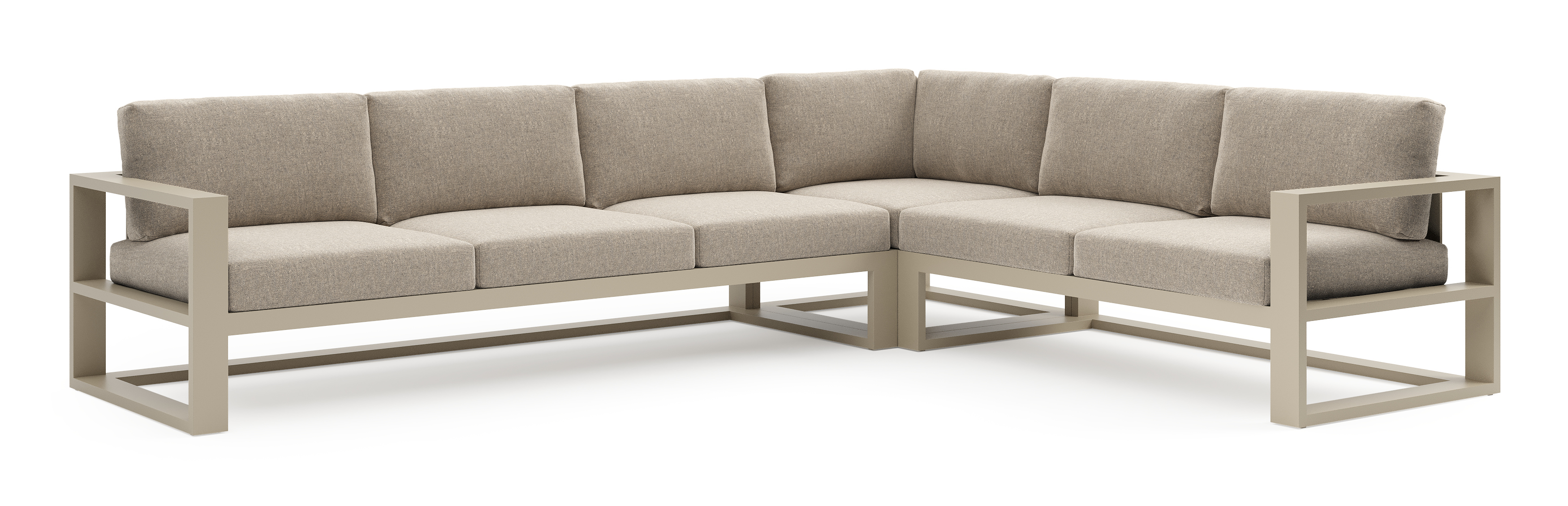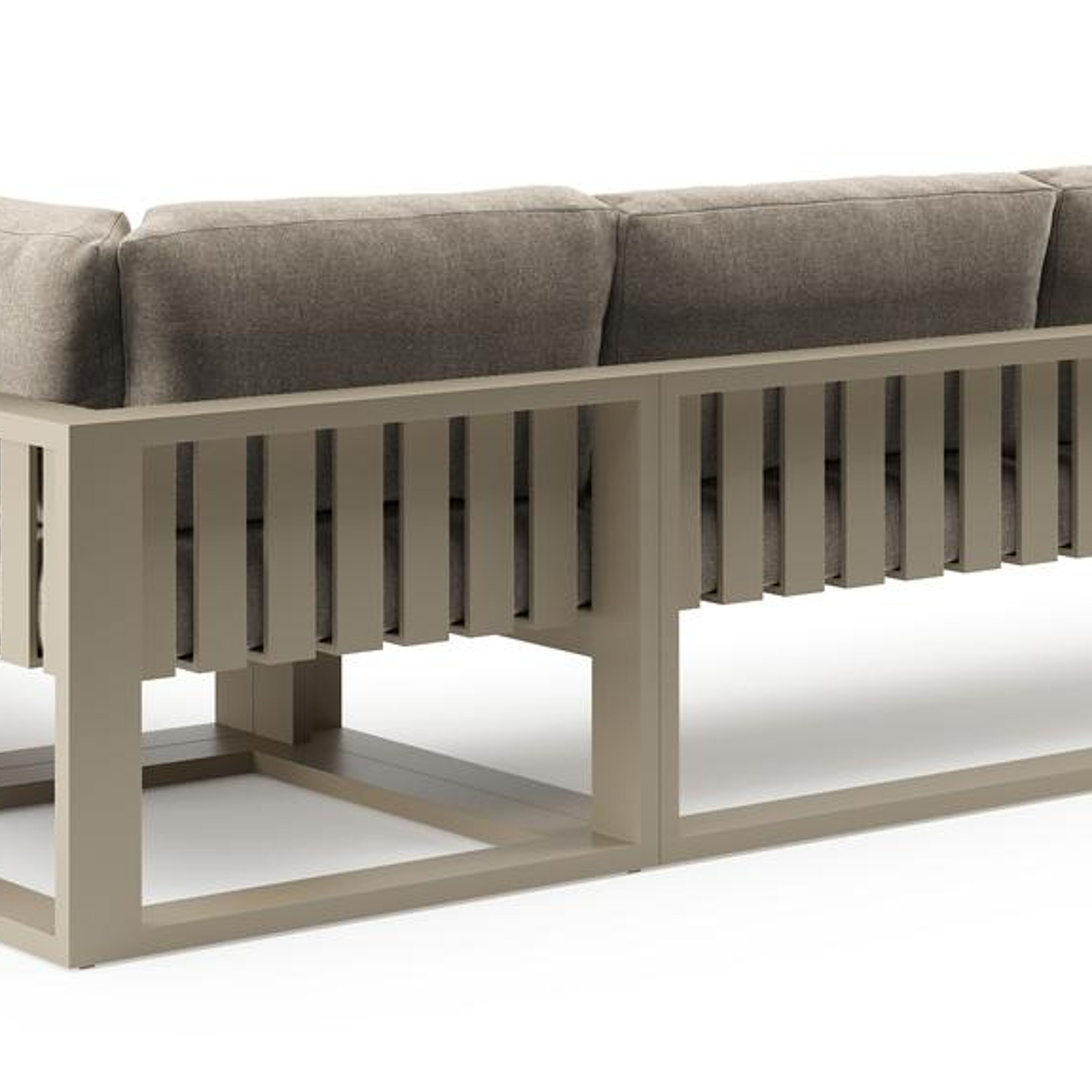 Verato loungehoek in beige aluminium met chartres pewter all weather sunbrella® luxe kussen | Exterioo tuinmeubelen