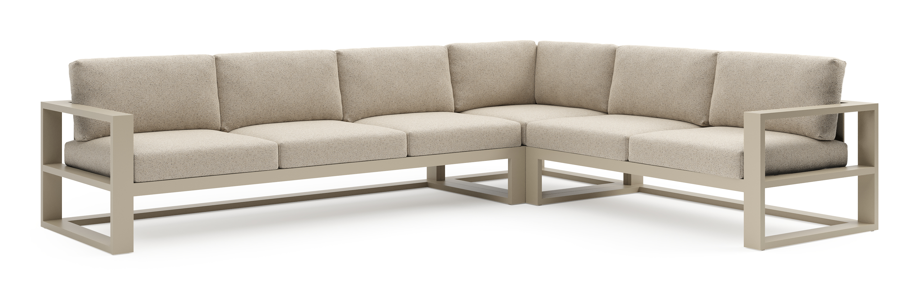 Verato loungehoek in beige aluminium met bora desert all weather cosytica kussen | Exterioo tuinmeubelen
