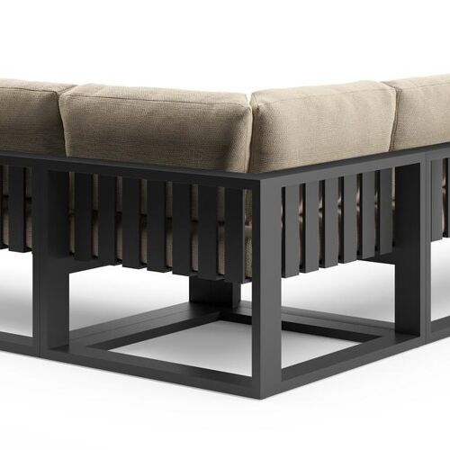 Verato loungehoek in zwart aluminium met althea camel all weather cosytica kussen | Exterioo