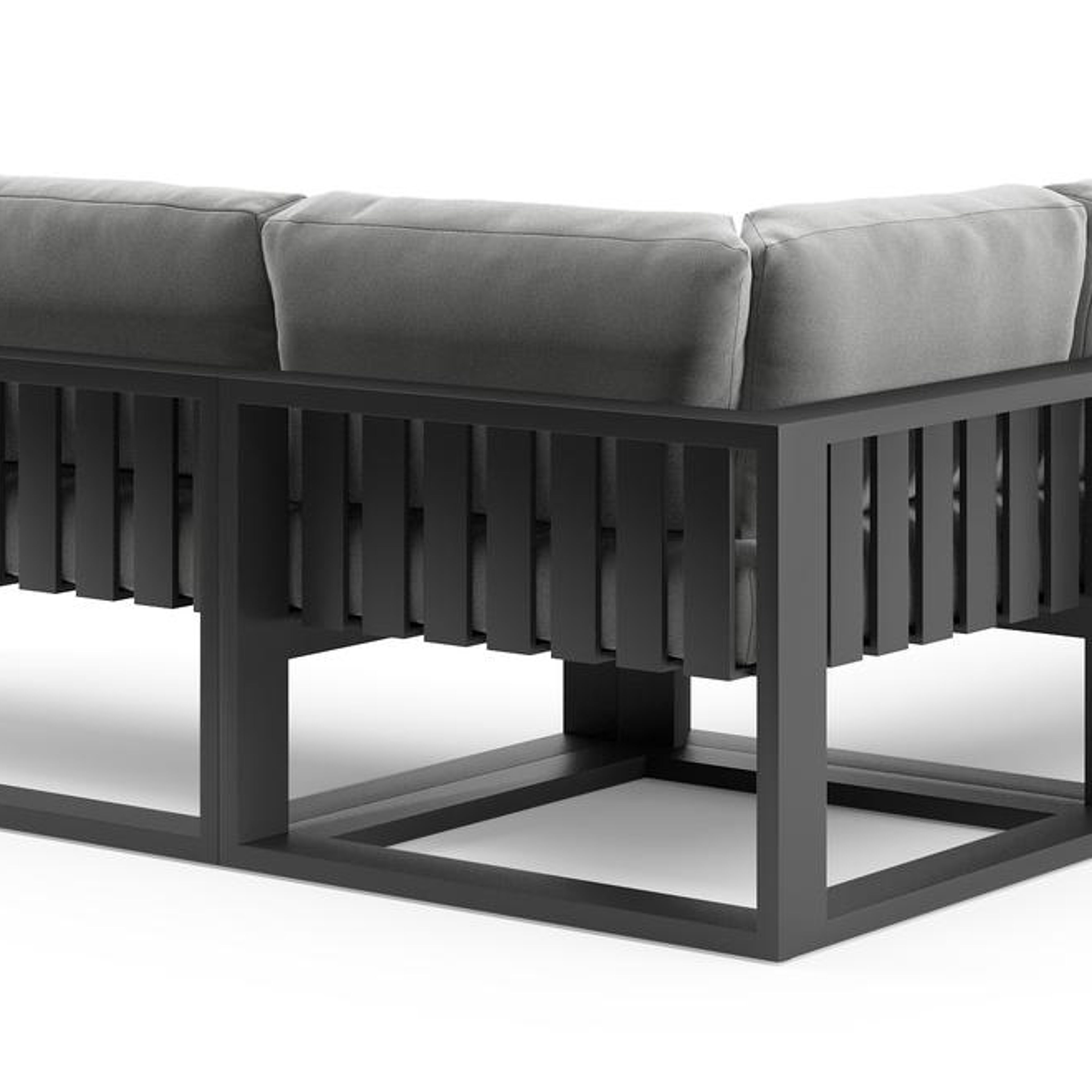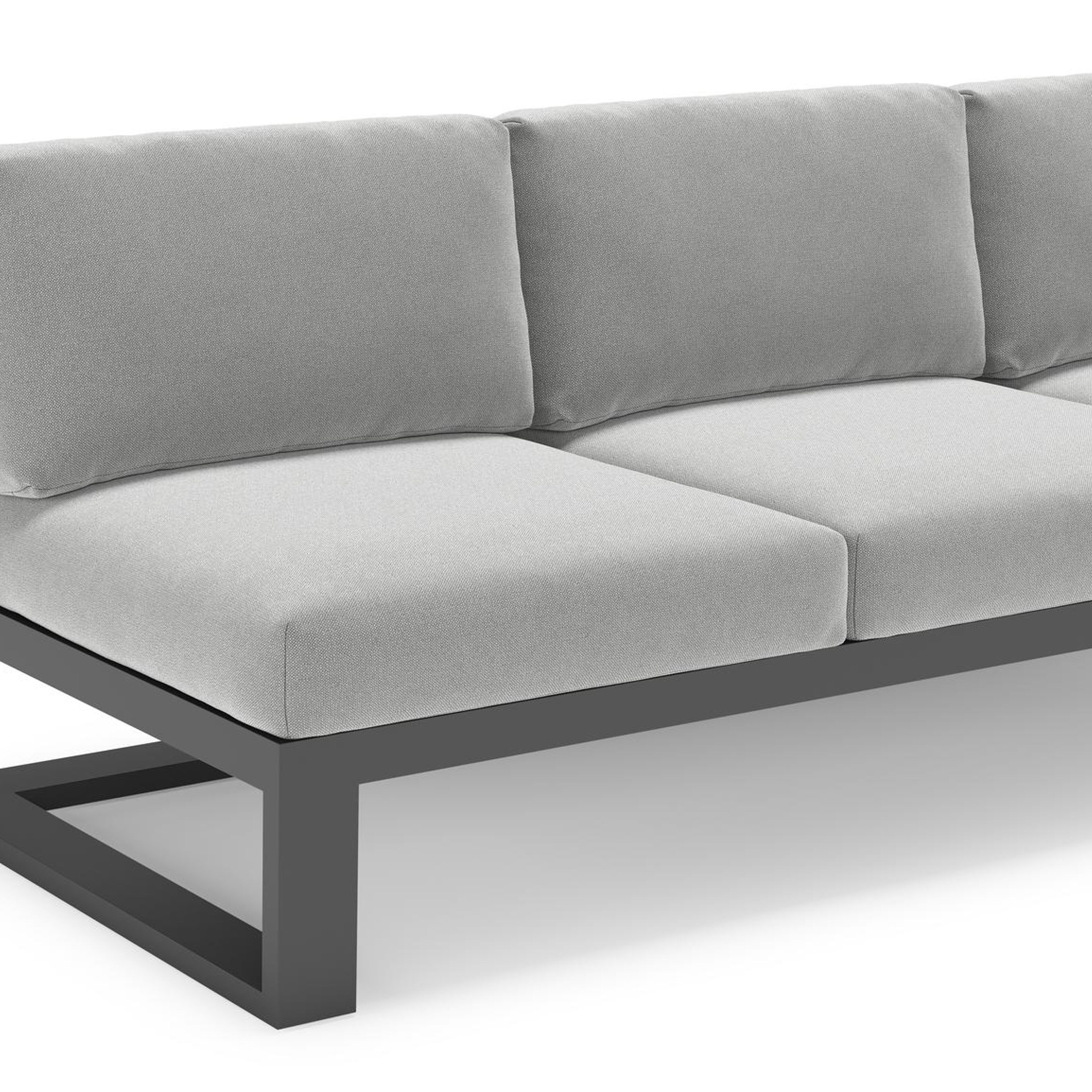 Verato loungehoek in zwart aluminium met savane grey all weather sunbrella® luxe kussen | Exterioo tuinmeubelen