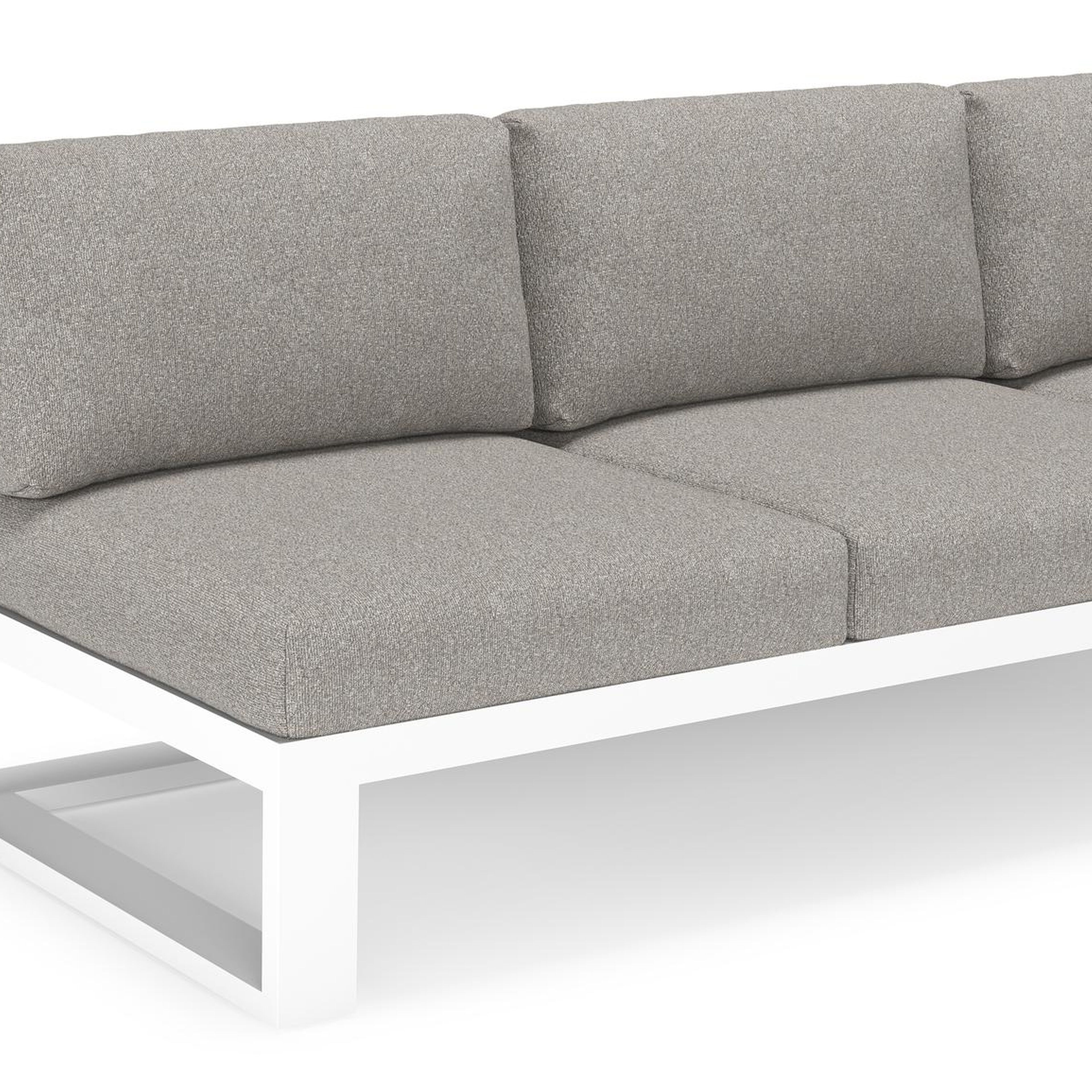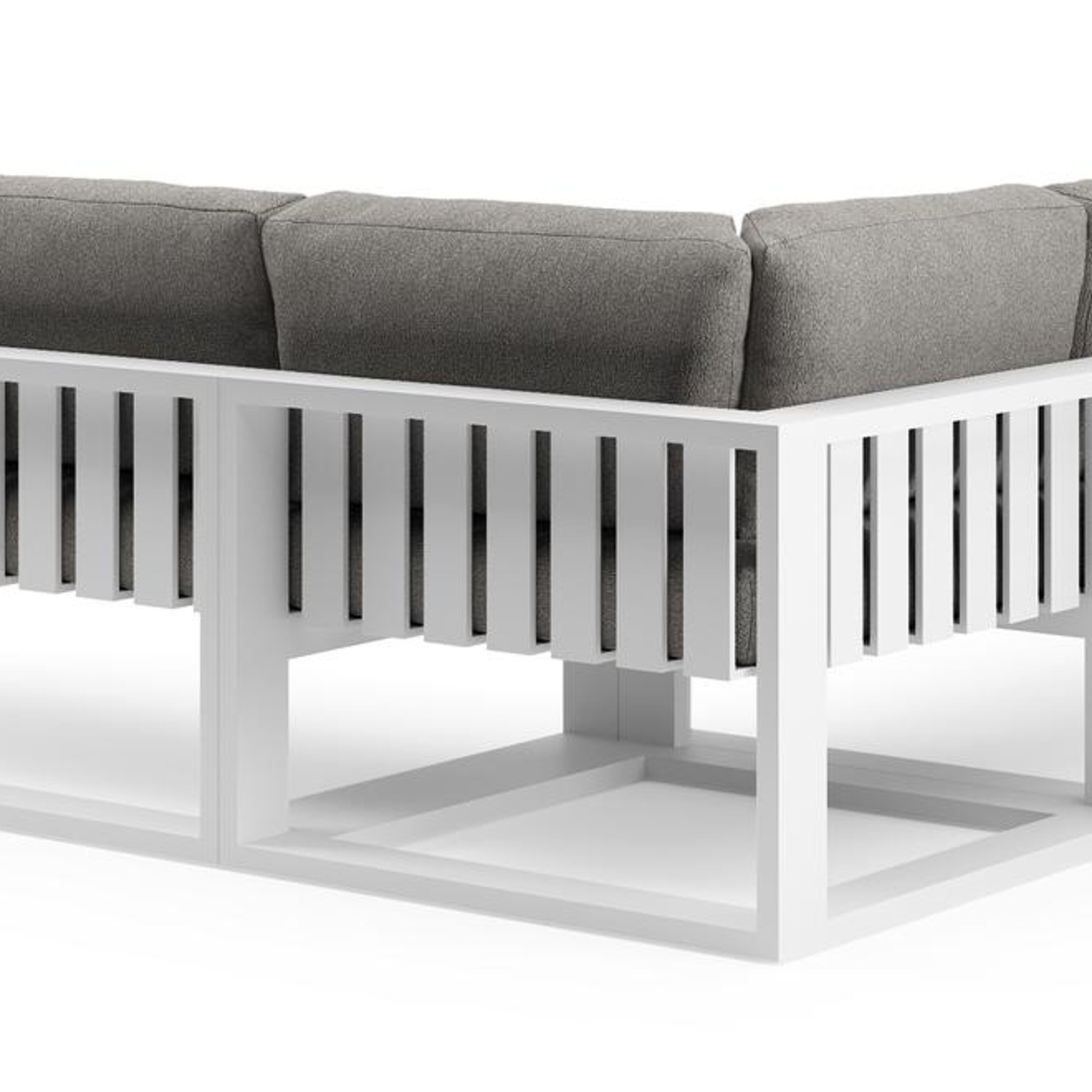 Verato loungehoek in wit aluminium met tundra charcoal all weather sunbrella® luxe kussen | Exterioo tuinmeubelen