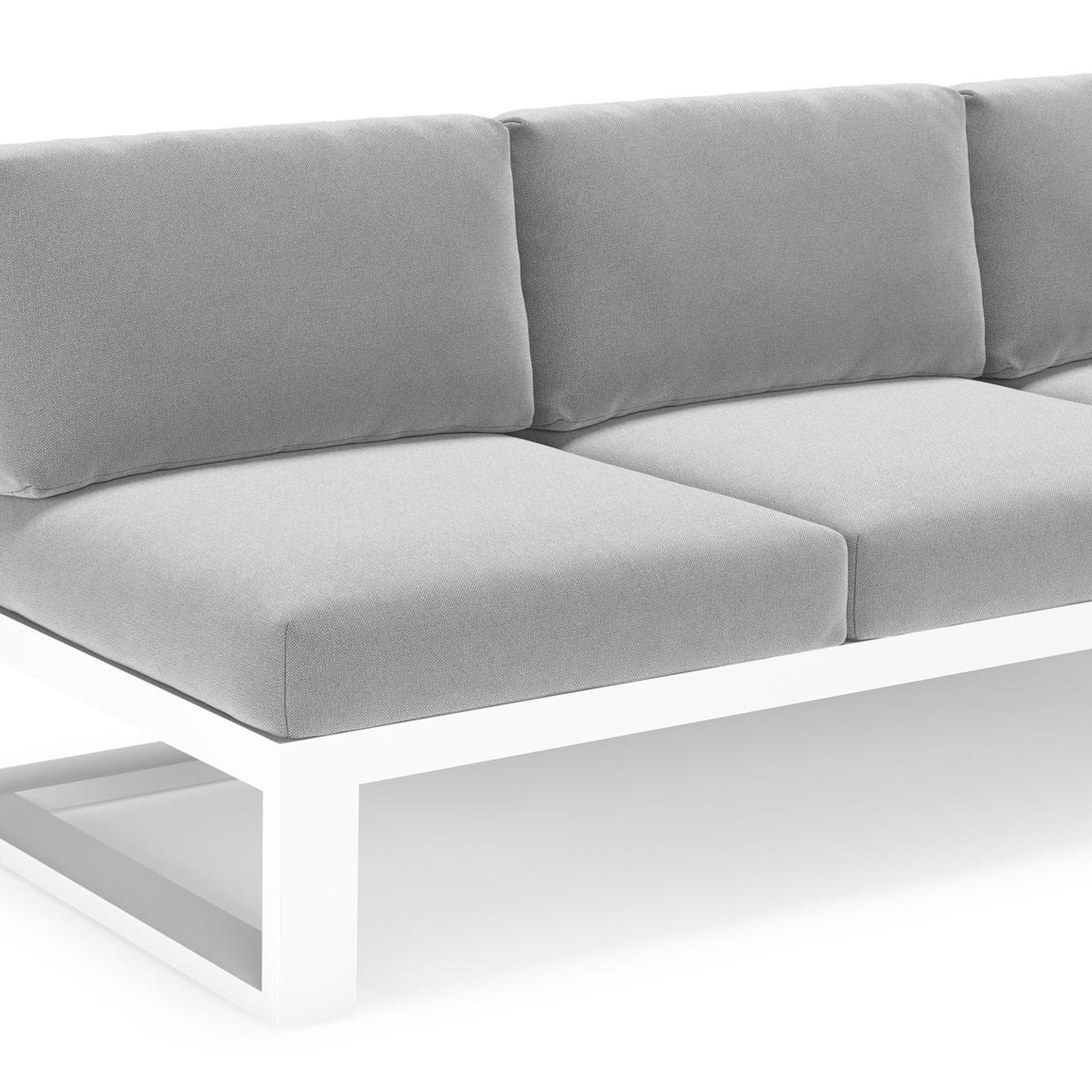 Verato loungehoek in wit aluminium met savane grey all weather sunbrella® luxe kussen | Exterioo tuinmeubelen