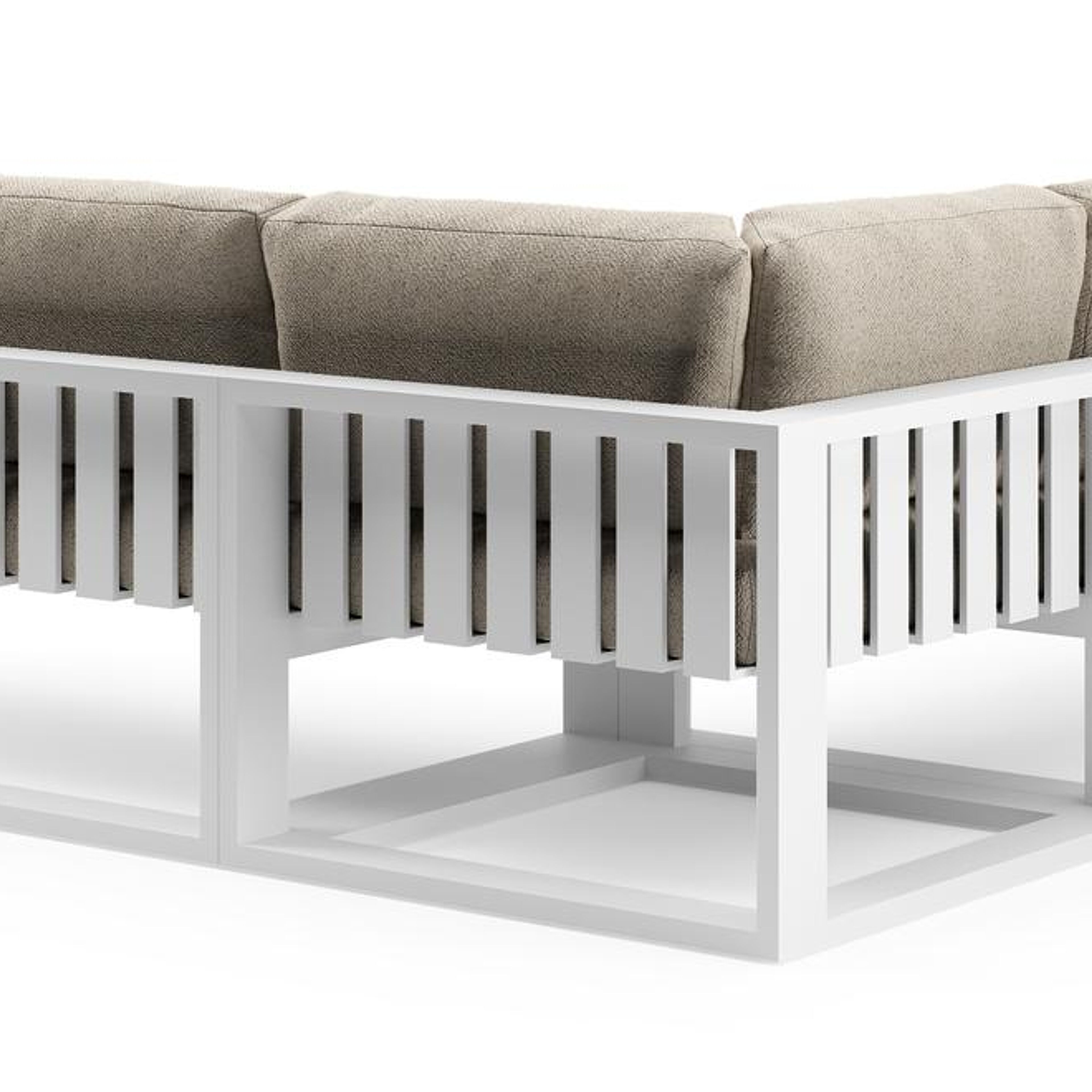 Verato loungehoek in wit aluminium met bora desert all weather cosytica kussen | Exterioo tuinmeubelen