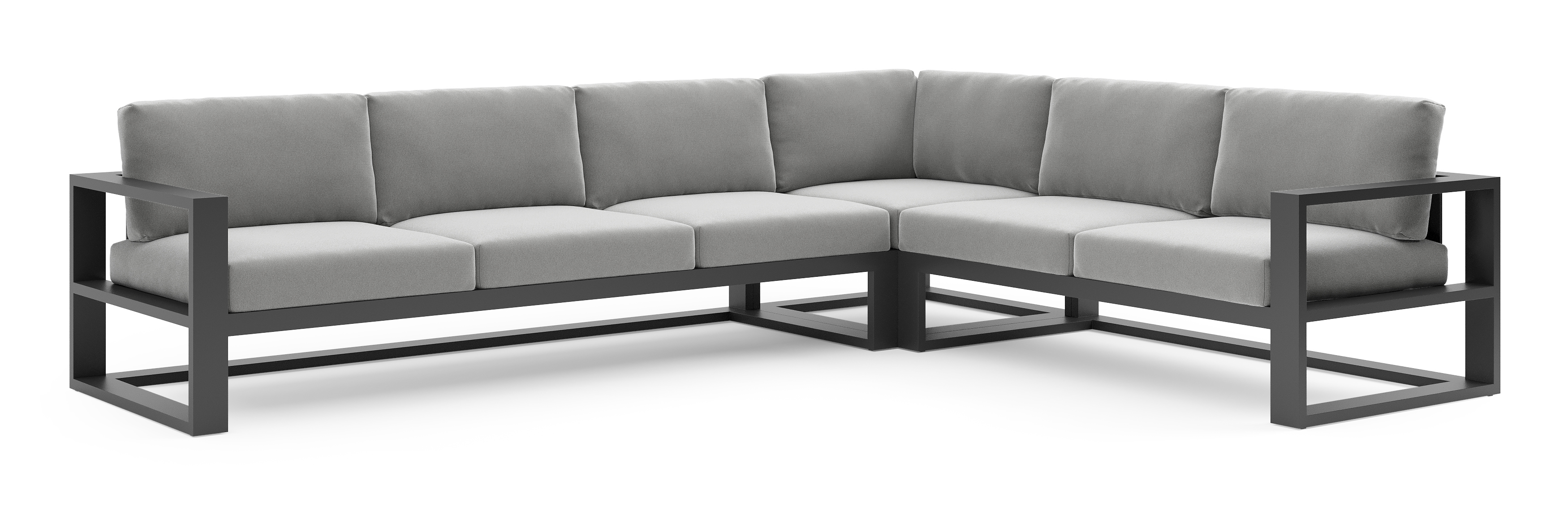 Verato loungehoek in zwart aluminium met savane grey all weather sunbrella® luxe kussen | Exterioo tuinmeubelen