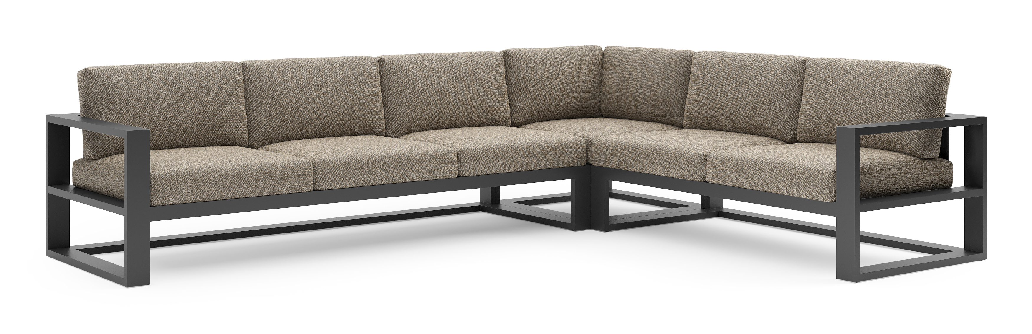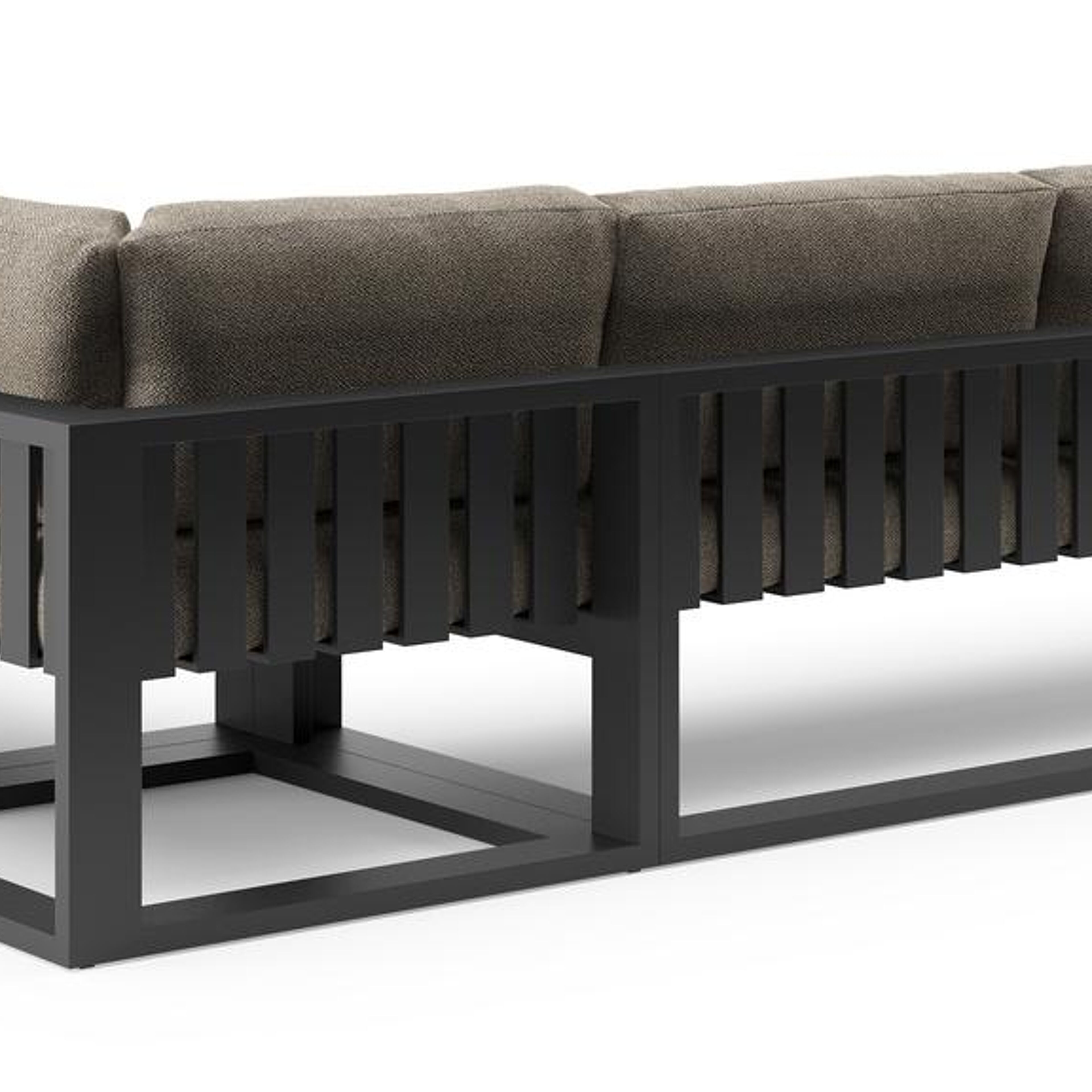 Verato loungehoek in zwart aluminium met madagascar burch all weather cosytica kussen | Exterioo tuinmeubelen