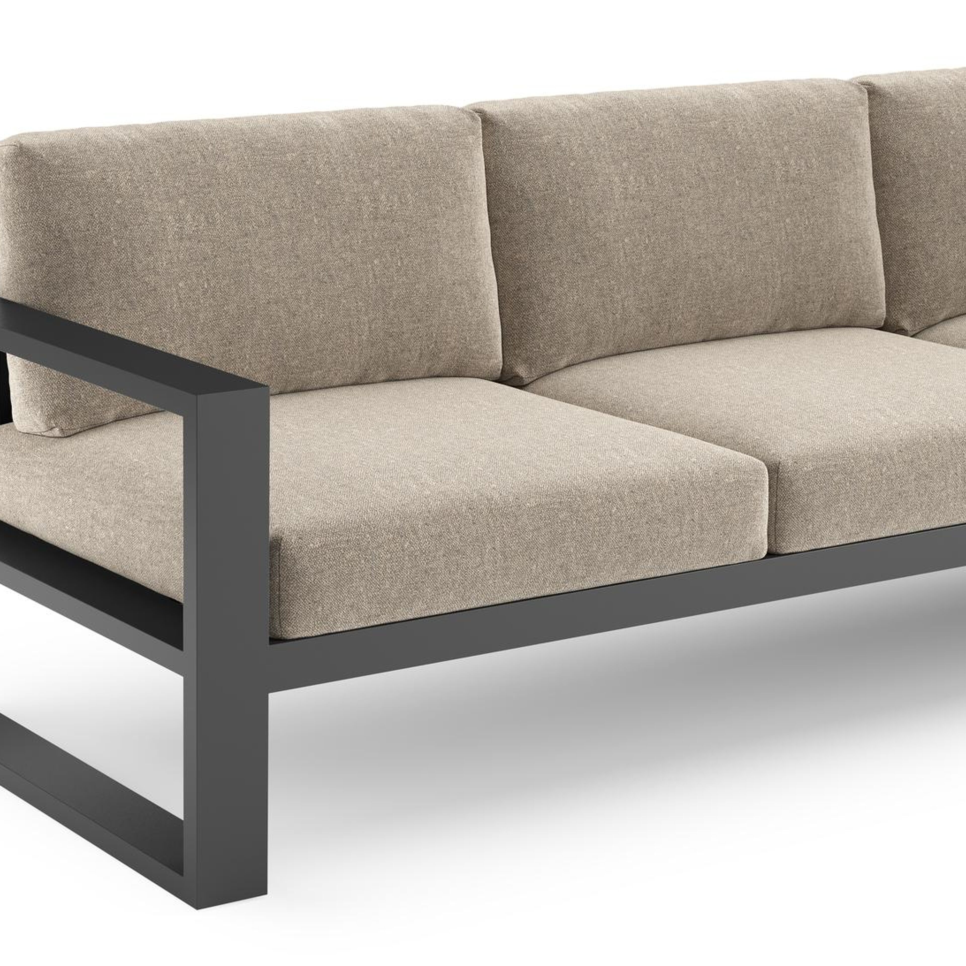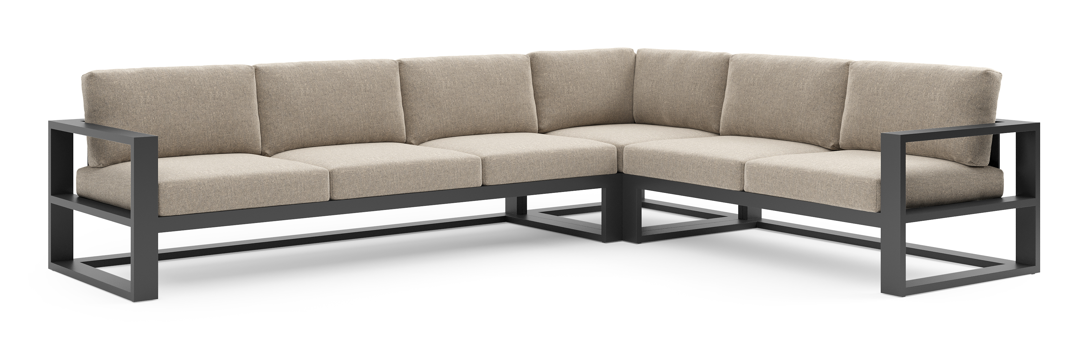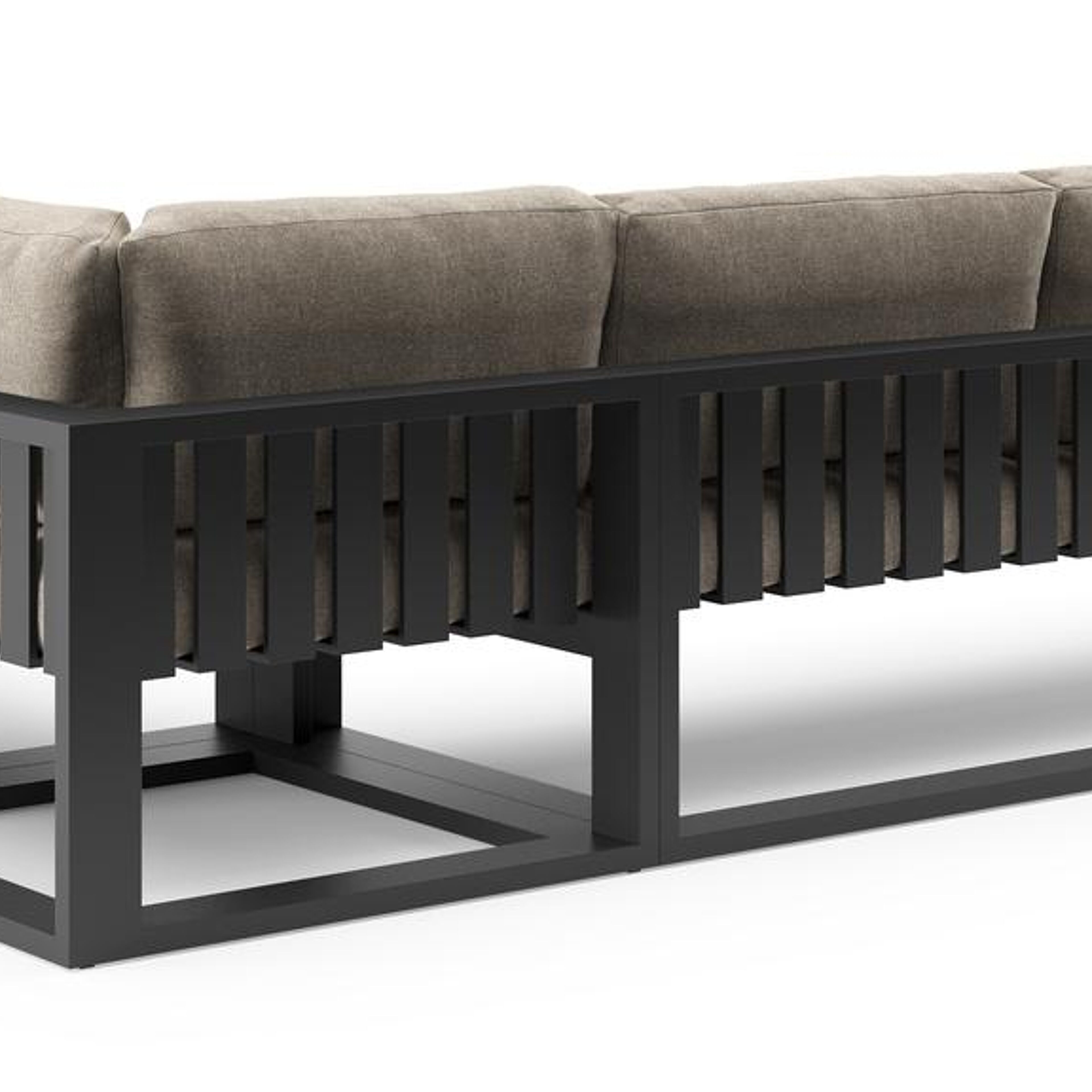 Verato loungehoek in zwart aluminium met chartres pewter all weather sunbrella® luxe kussen | Exterioo tuinmeubelen