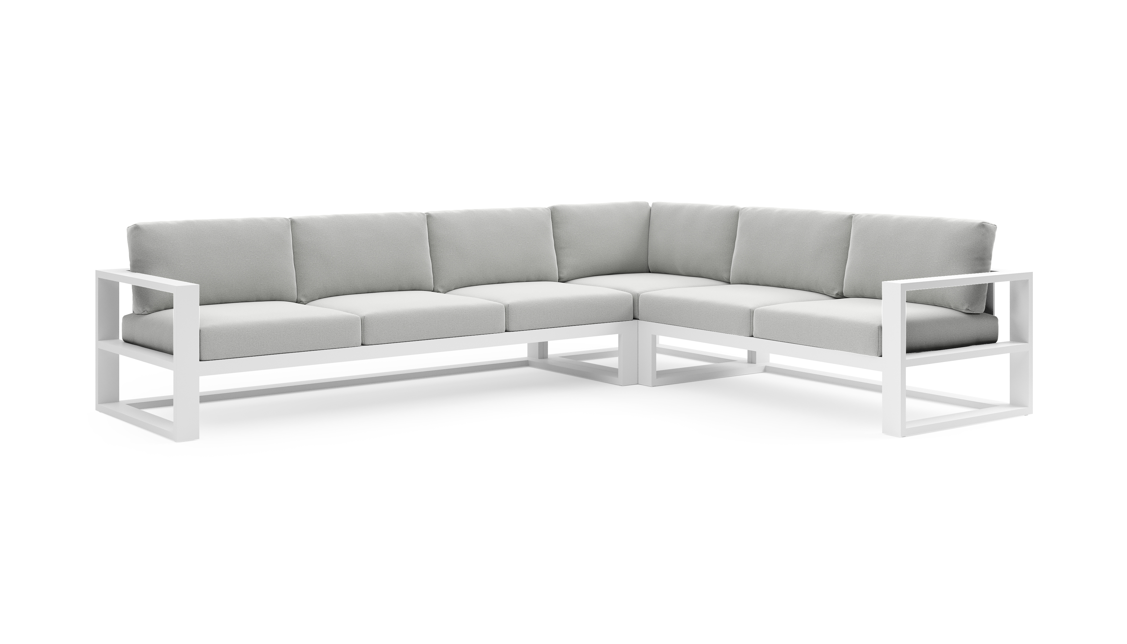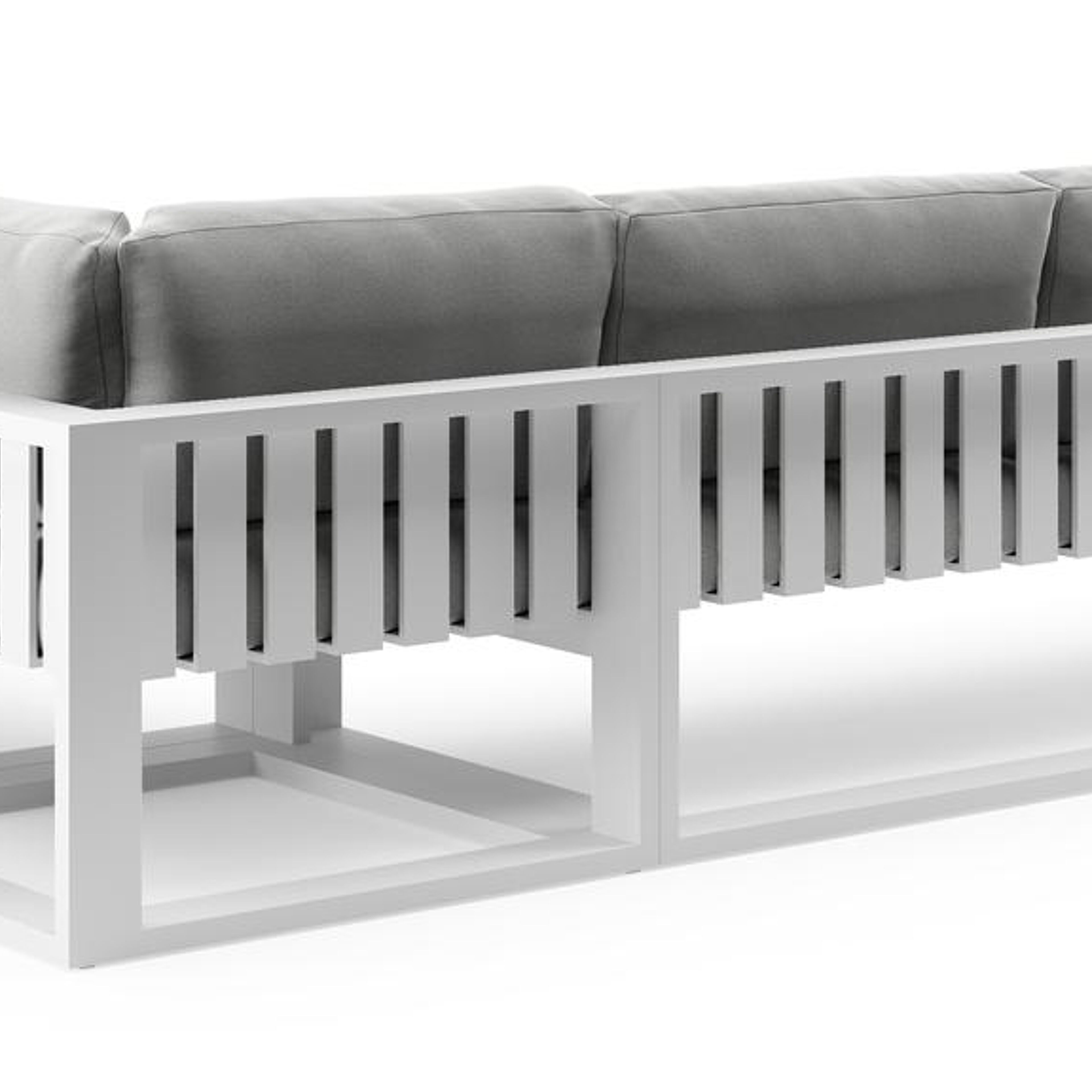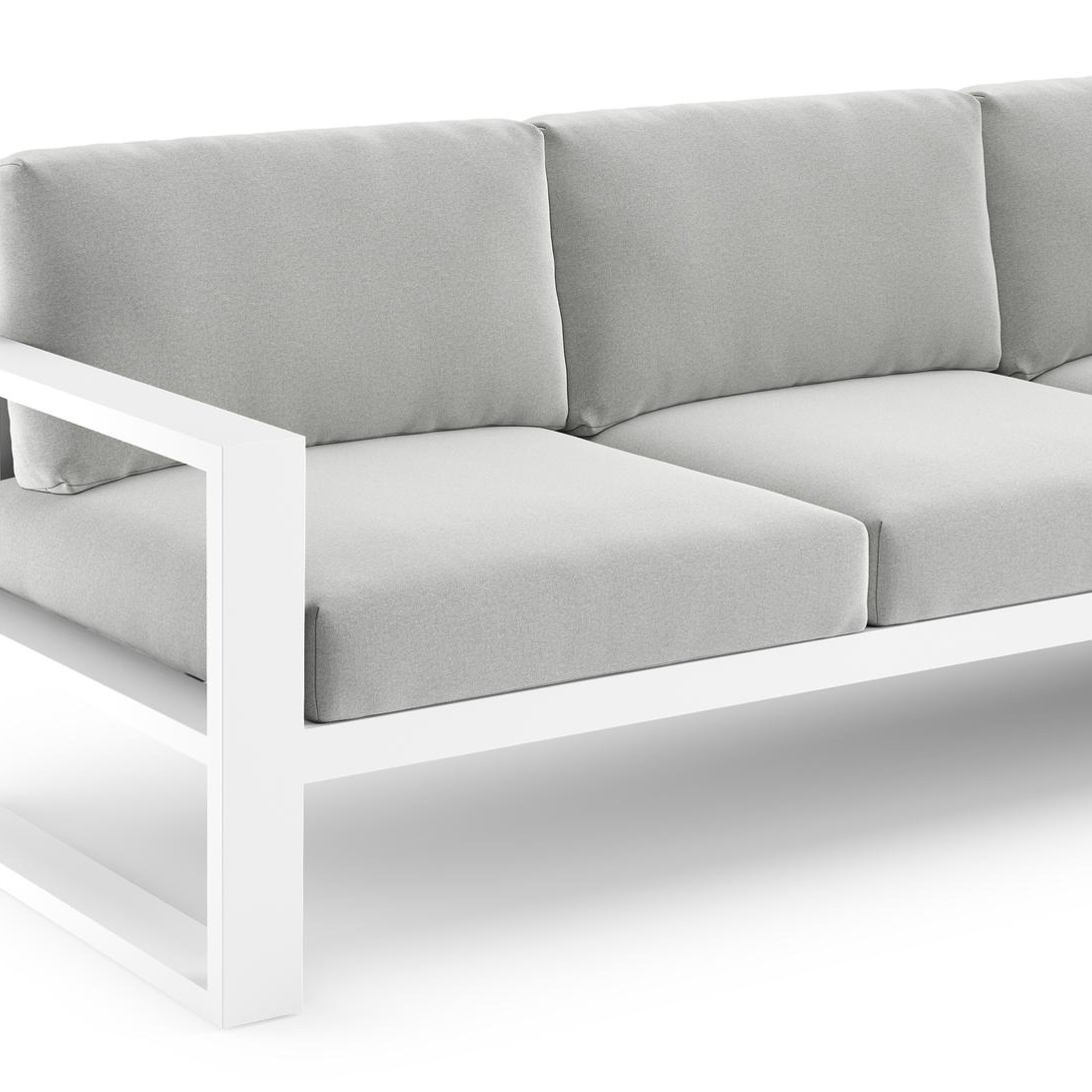 Verato loungehoek in wit aluminium met natte grey chine all weather sunbrella® luxe kussen | Exterioo tuinmeubelen