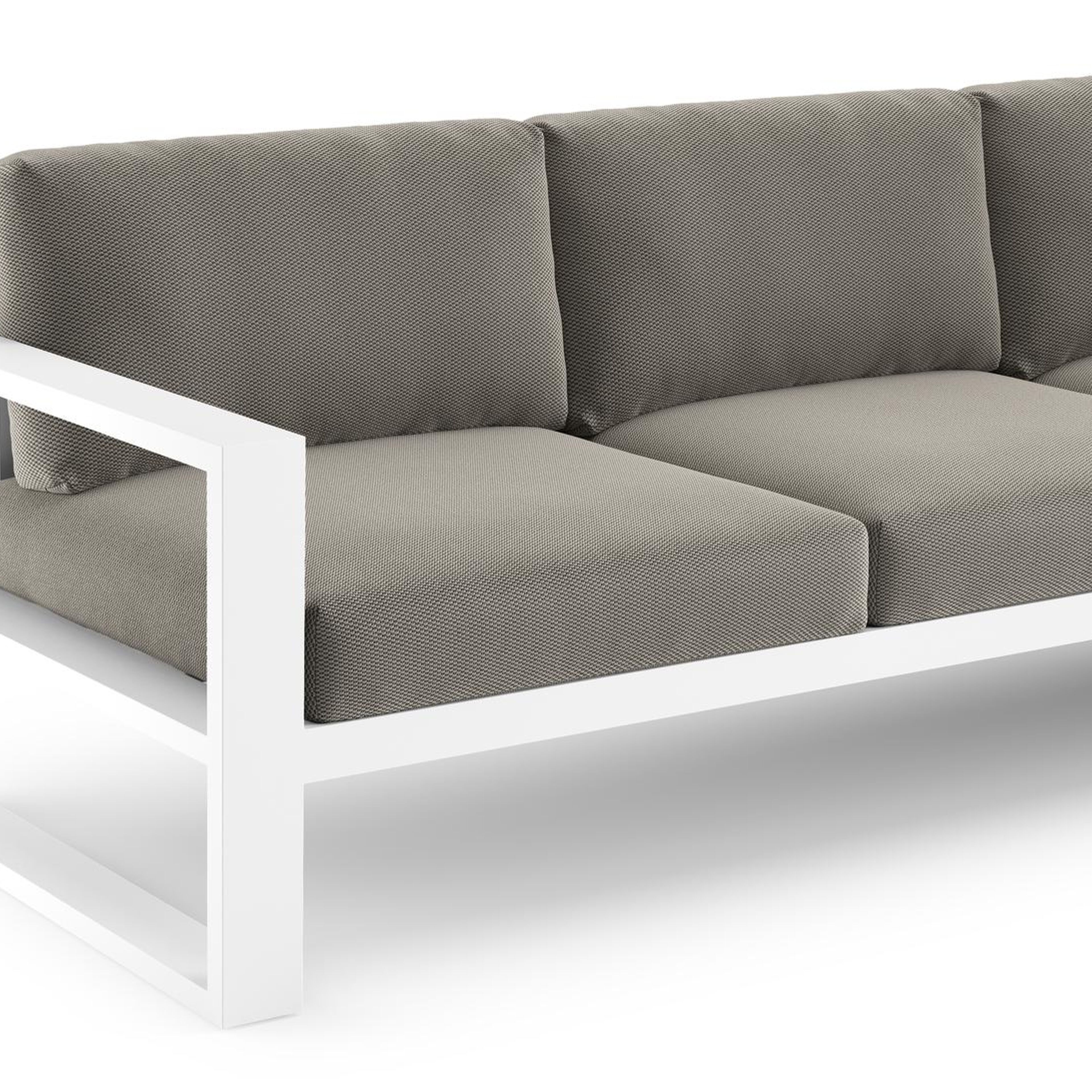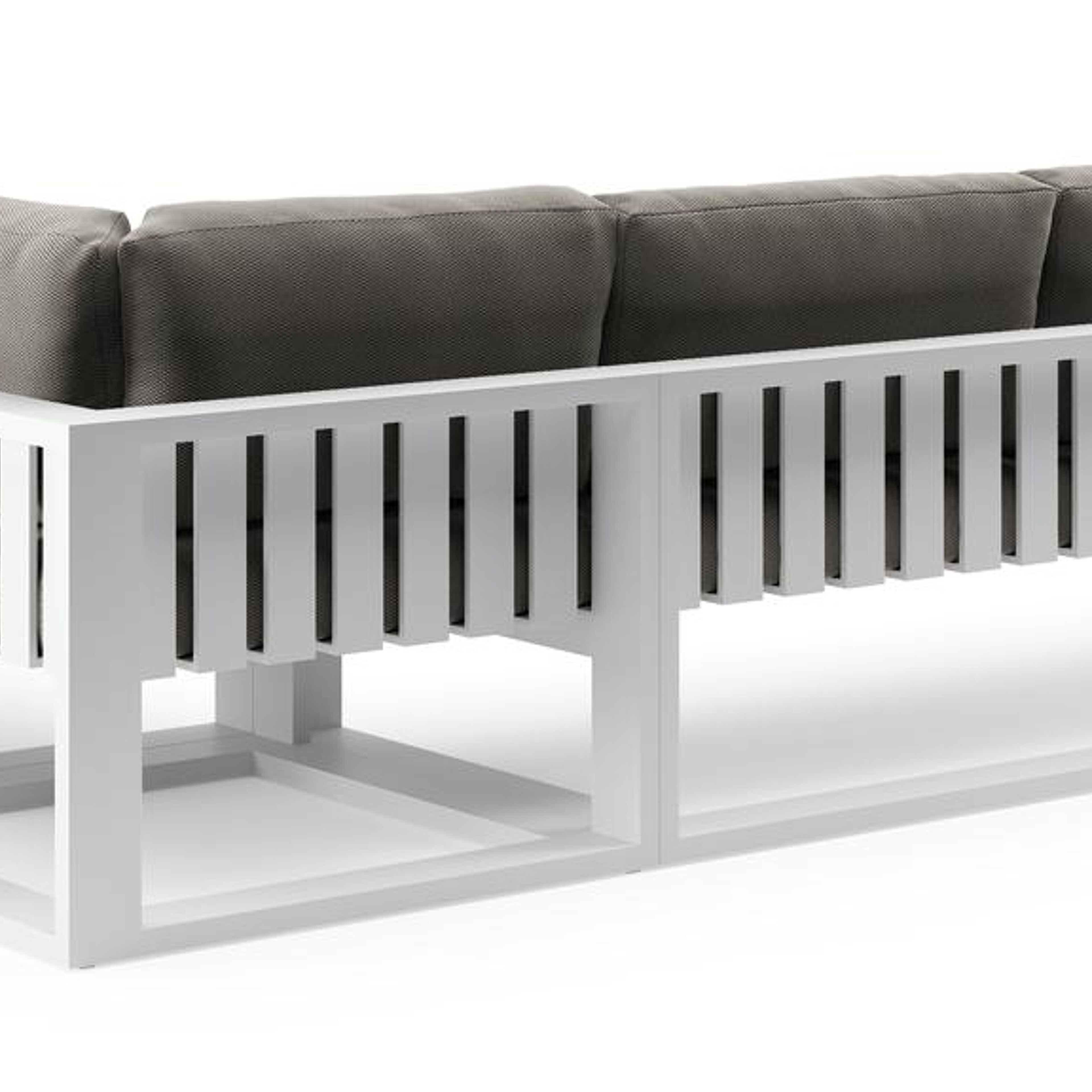 Verato loungehoek in wit aluminium met lopi charcoal all weather sunbrella® luxe kussen | Exterioo tuinmeubelen