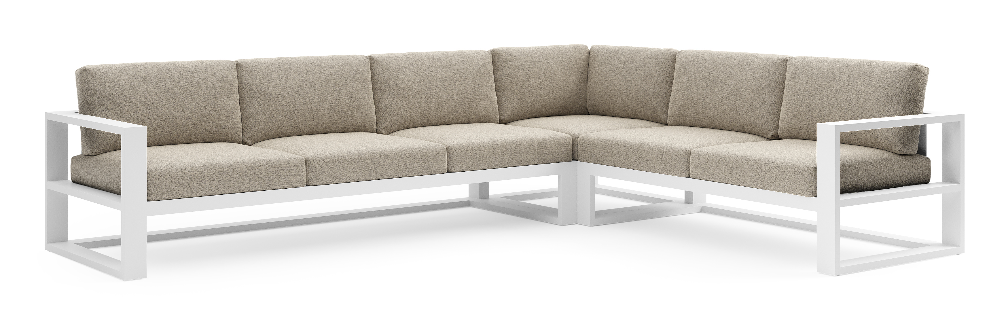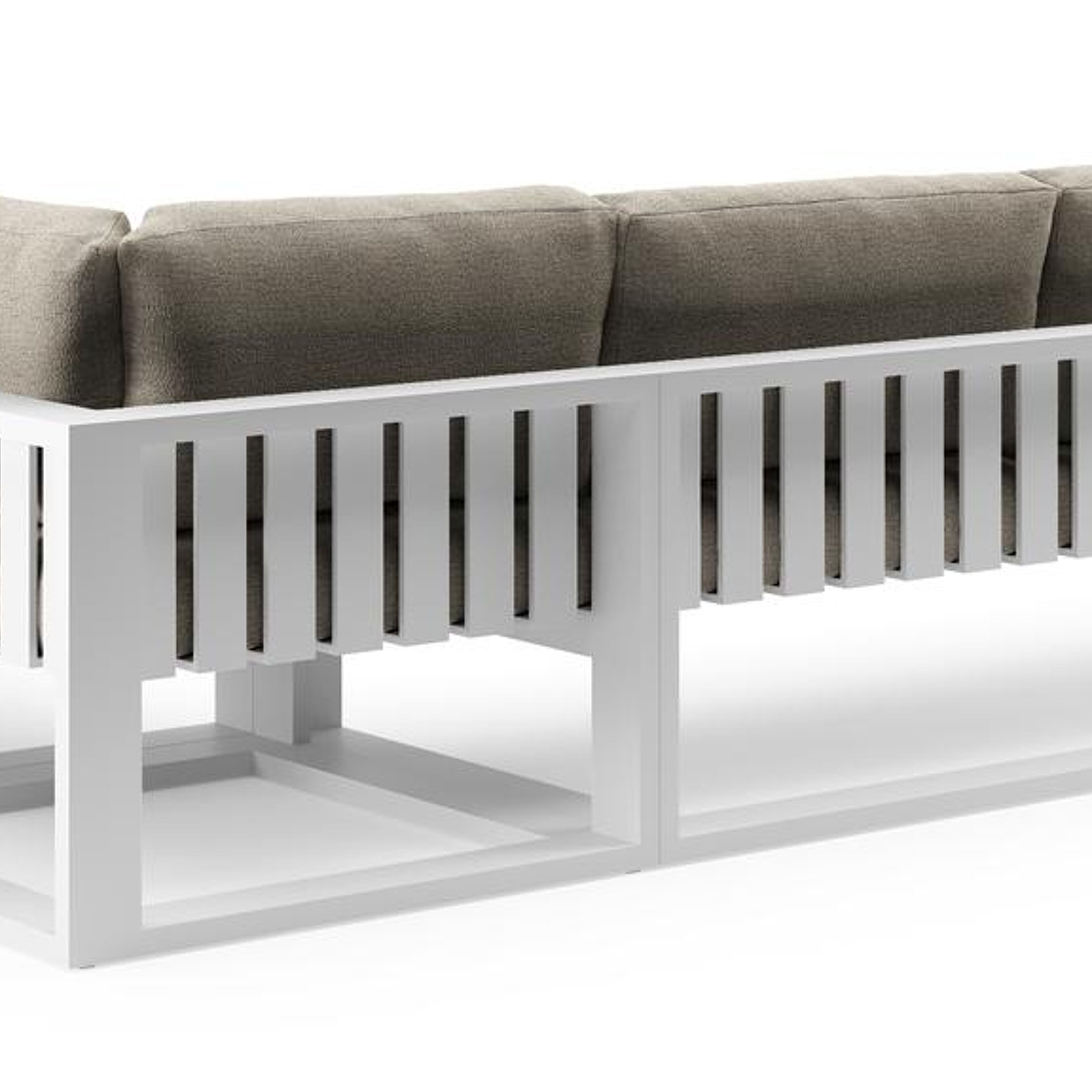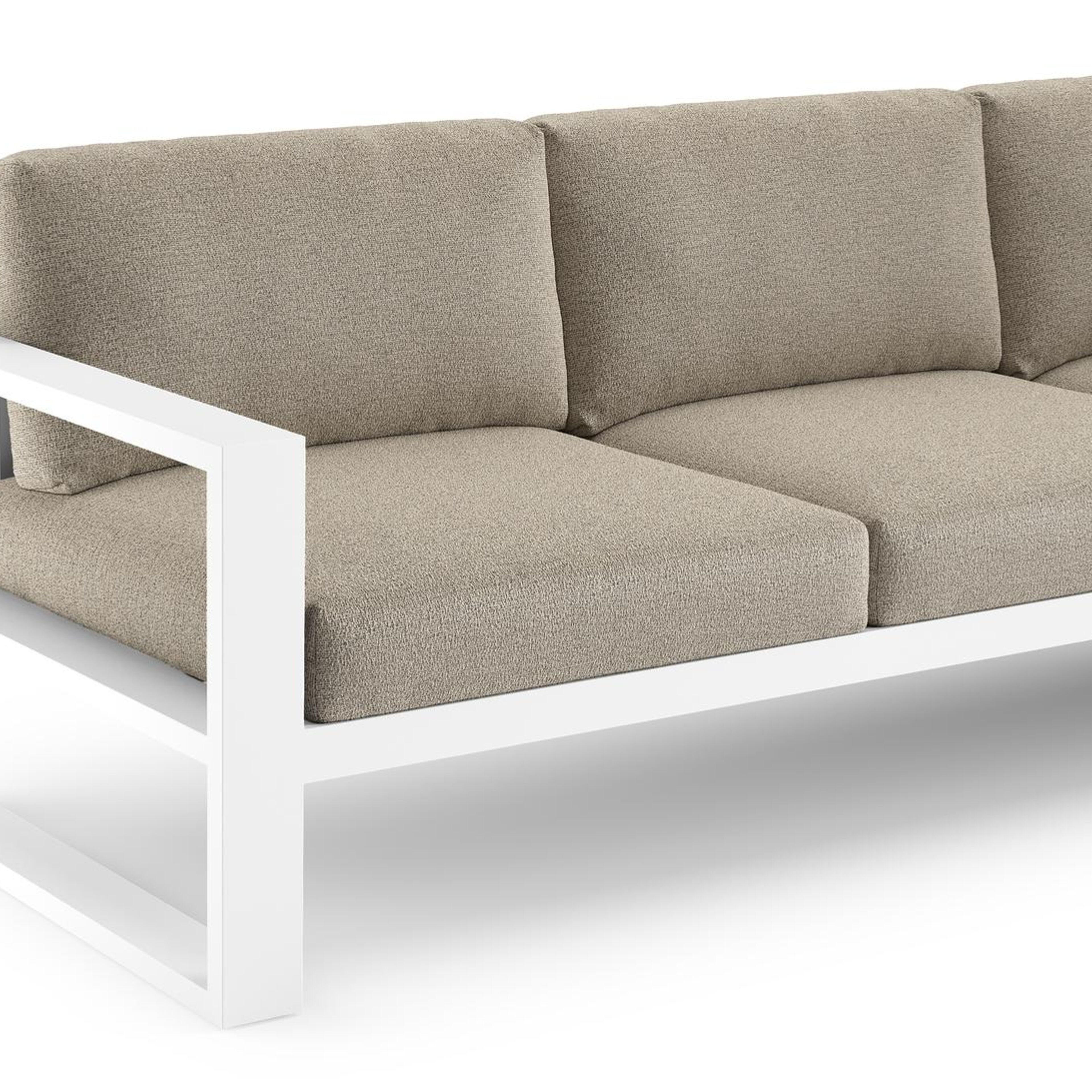 Verato loungehoek in wit aluminium met catania beige all weather cosytica kussen | Exterioo tuinmeubelen