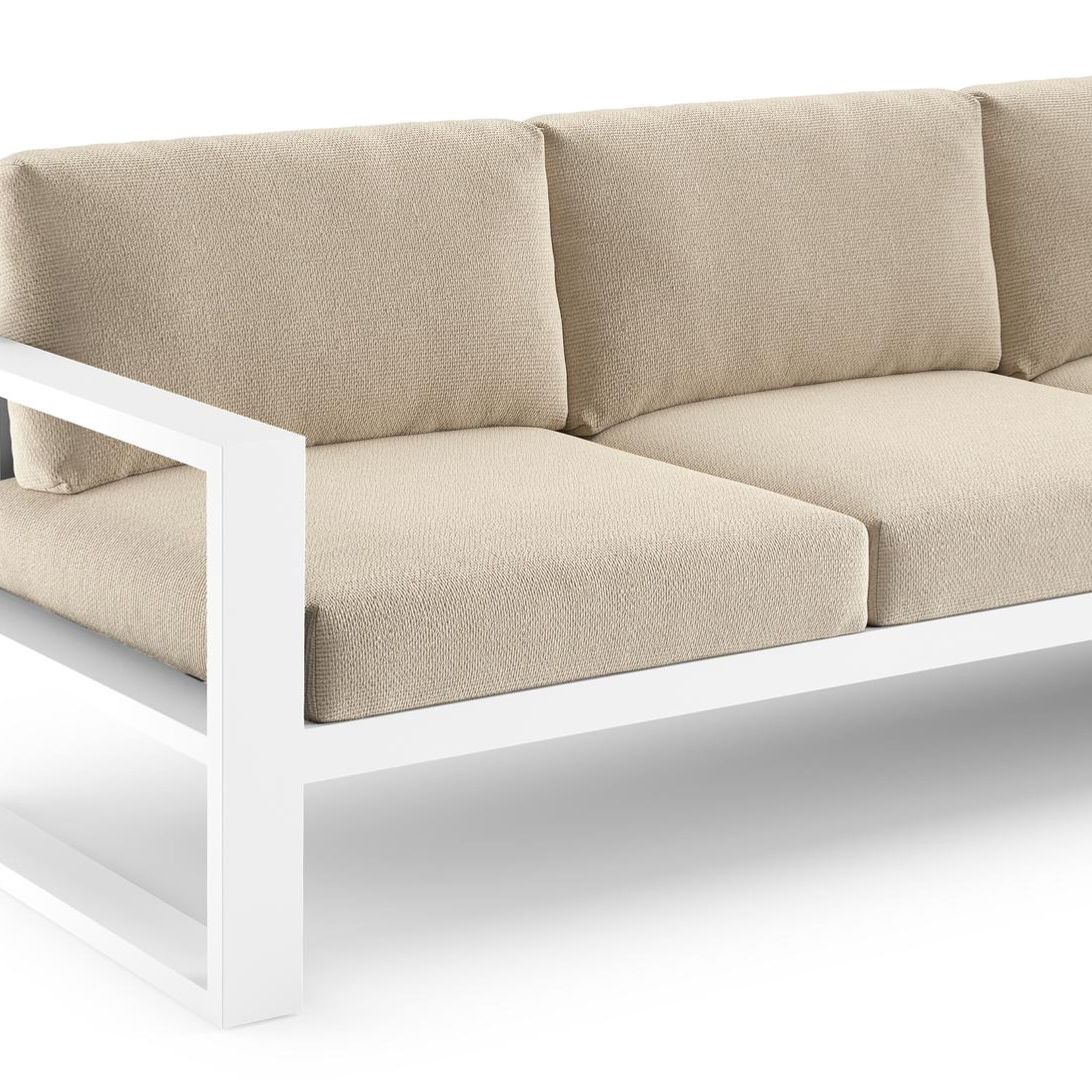Verato loungehoek in wit aluminium met althea chalk all weather cosytica kussen | Exterioo tuinmeubelen