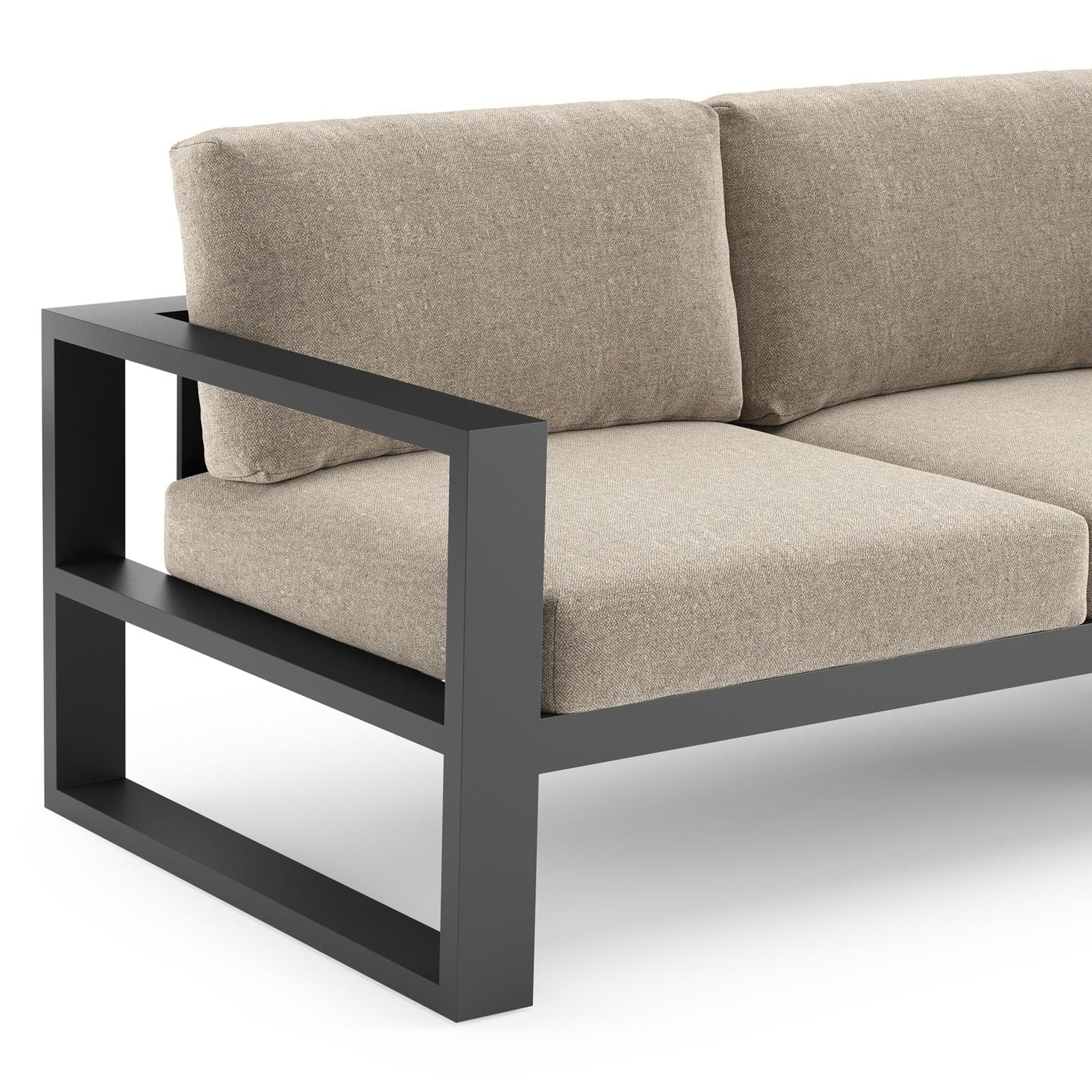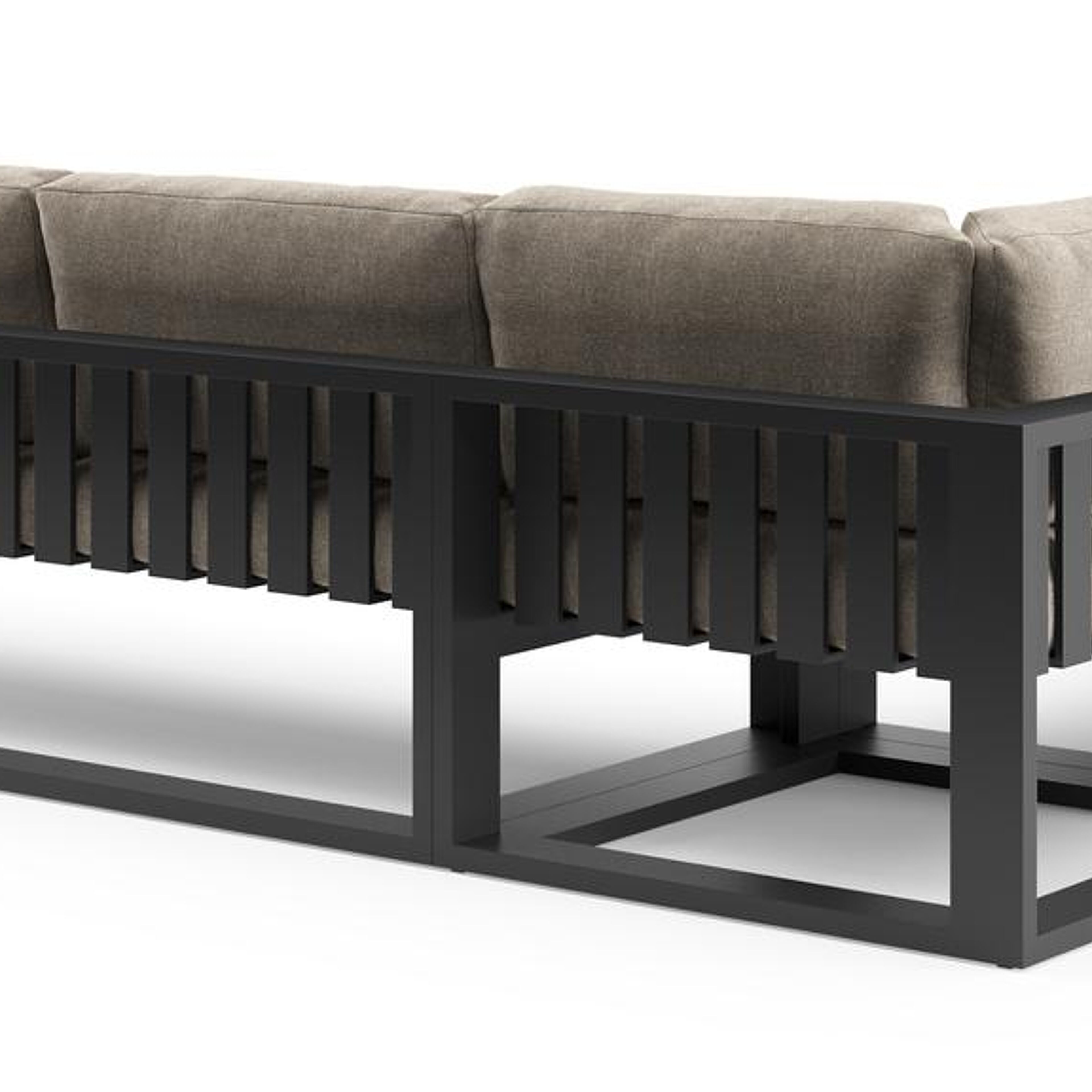 Verato loungehoek in zwart aluminium met chartres pewter all weather sunbrella® luxe kussen | Exterioo tuinmeubelen