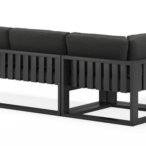 Verato loungehoek in zwart aluminium met tundra charcoal all weather sunbrella® luxe kussens | Exterioo