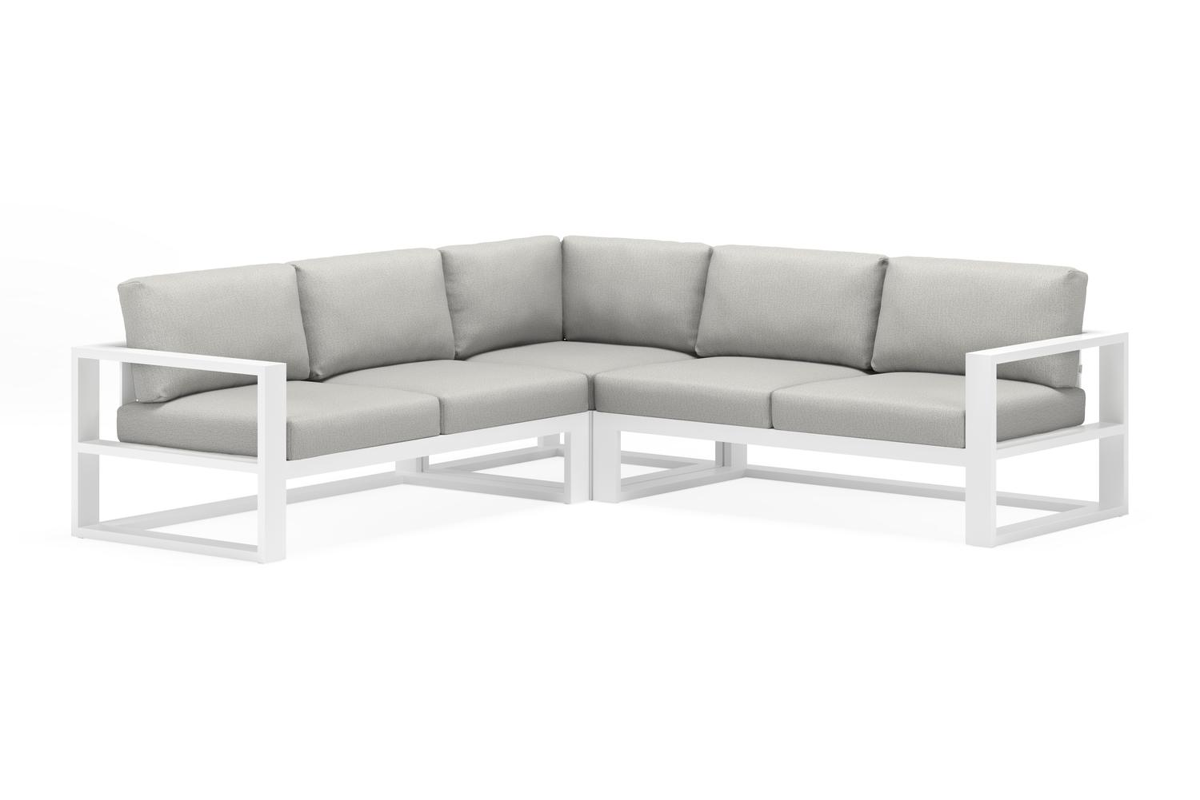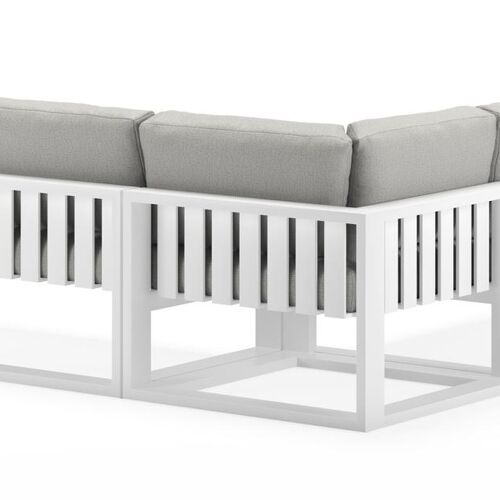 Verato loungehoek in wit aluminium met tweed dune all weather sunbrella® luxe kussens | Exterioo