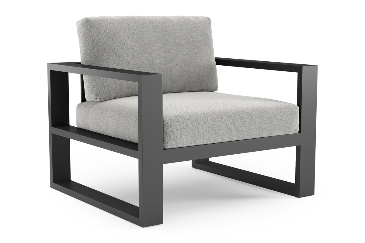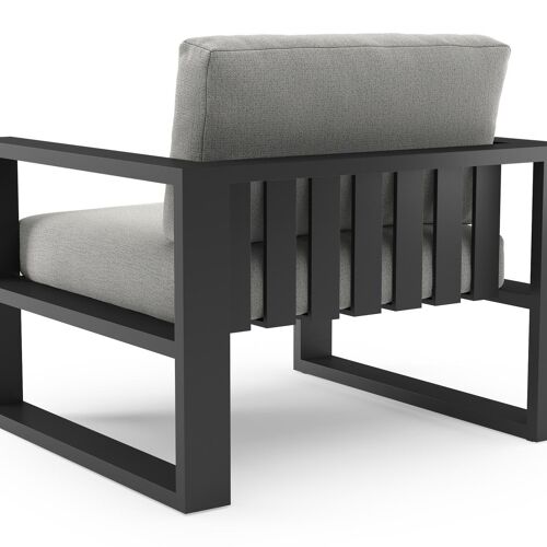 Verato loungestoel in zwart aluminium met savane nimbus all weather sunbrella® luxe kussen | Exterioo