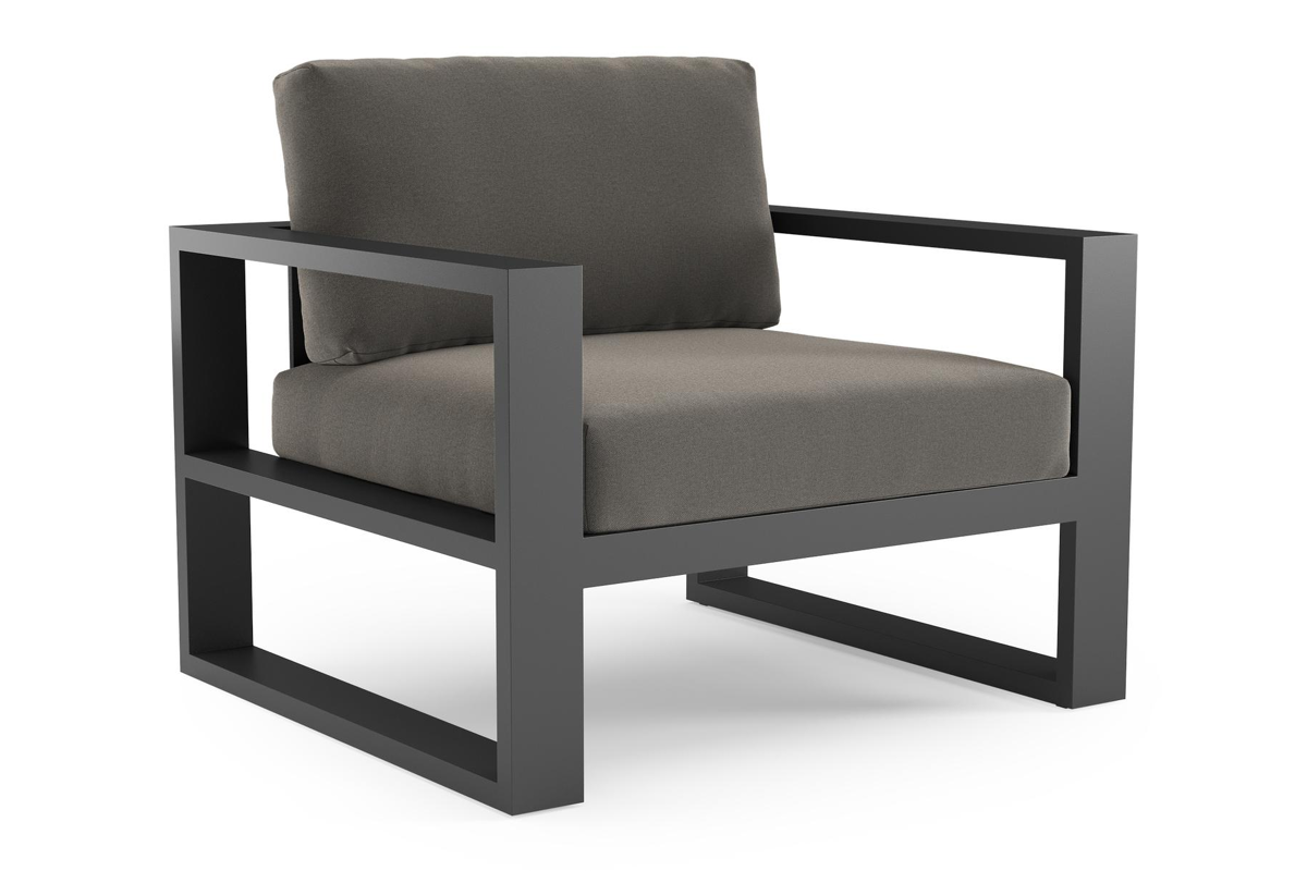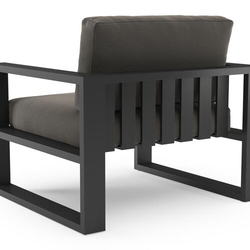 Verato loungestoel in zwart aluminium met natte dark taupe all weather sunbrella® luxe kussen | Exterioo