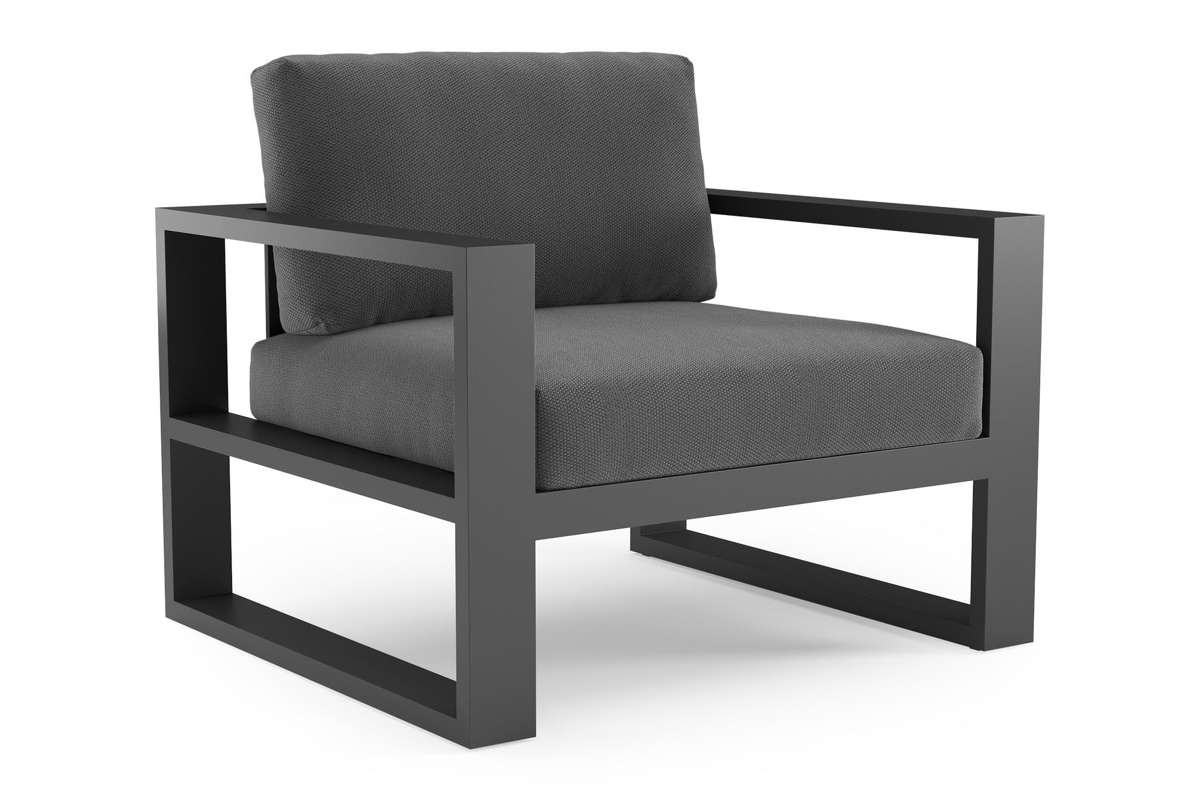 Verato loungestoel in zwart aluminium met lopi shadow all weather sunbrella® luxe kussen | Exterioo